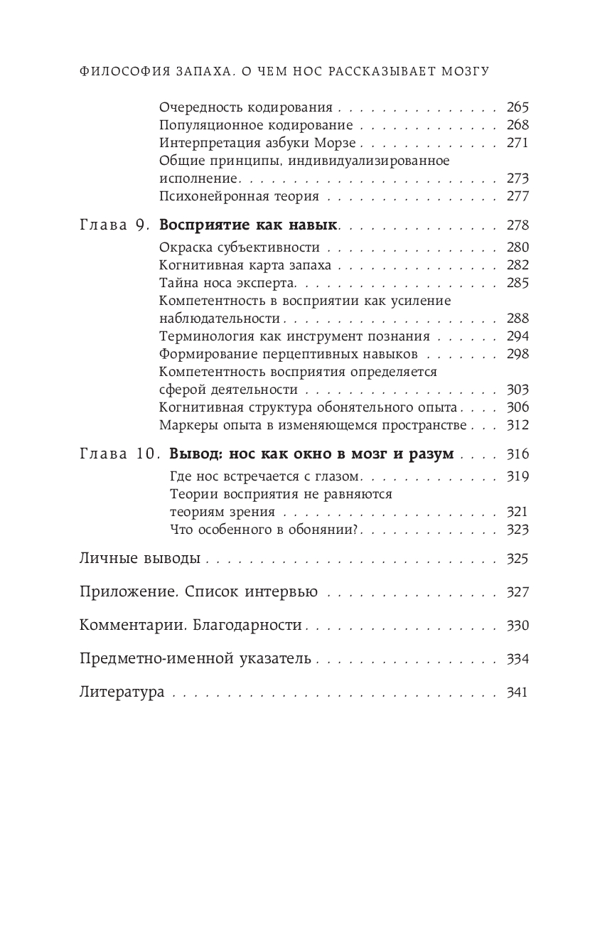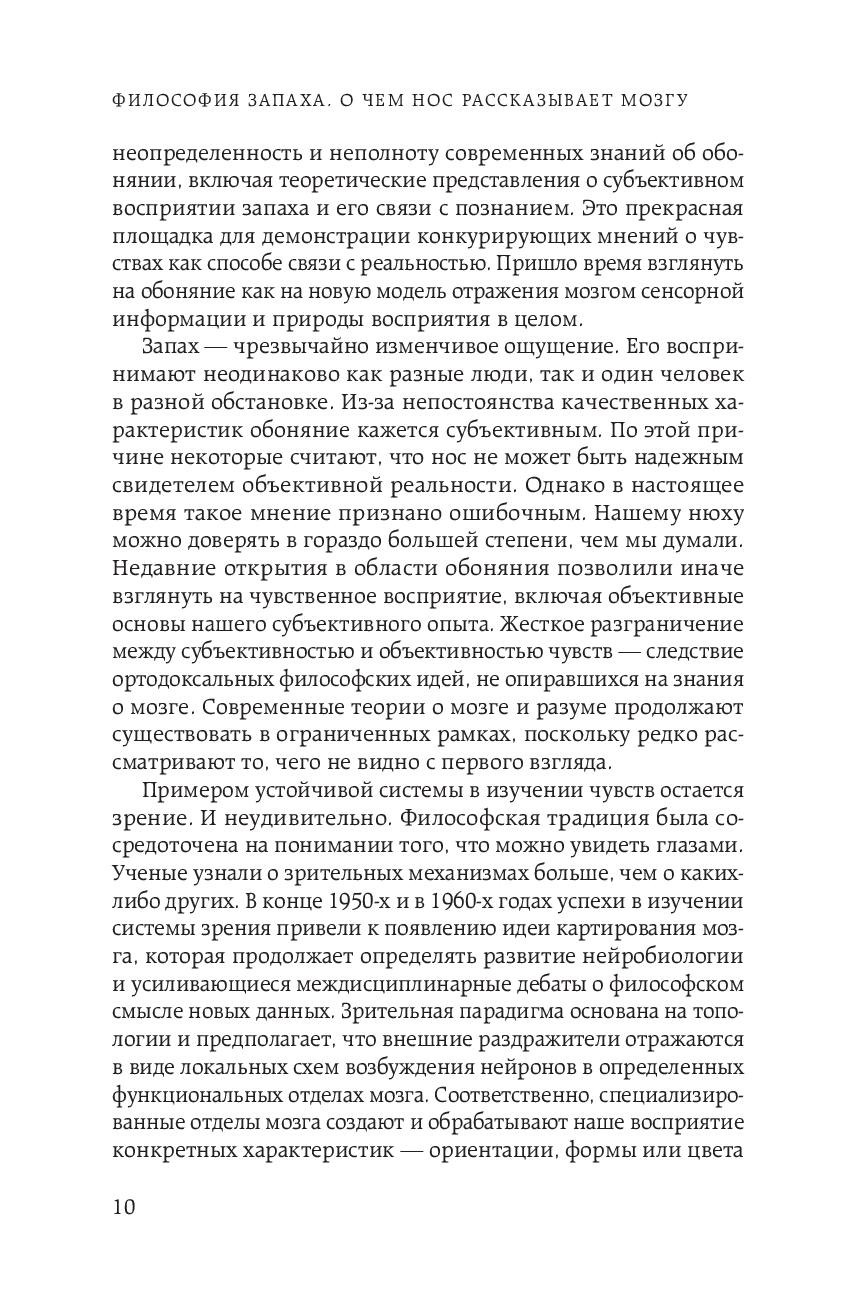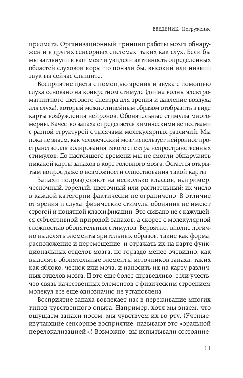 Автор рассказывает о том, как изучают биологическую механику и "значения" запахов, а еще – об интересных разработках в сфере нейробиологии, молекулярной биологии, генетики, химии и любопытных экспериментах в парфюмерии и виноделии.