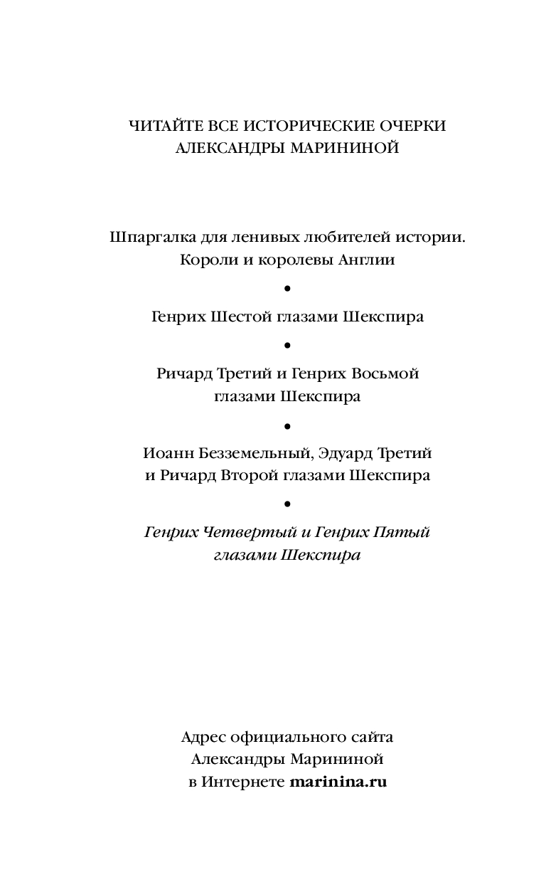 Александра Маринина предлагает увлекательное историческое расследование, почему правители торжествуют на полях сражений, но проигрывают собственным демонам. Главным свидетелем и экспертом выступает гениальный Уильям Шекспир.