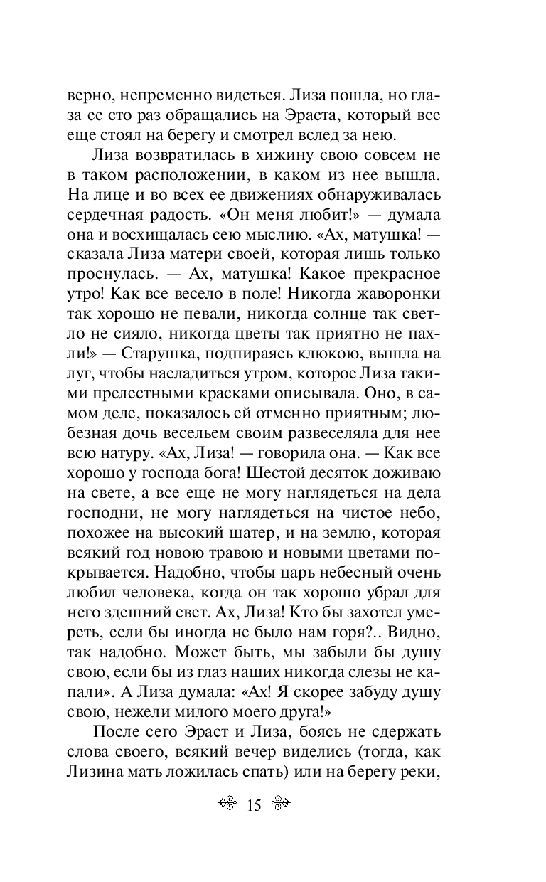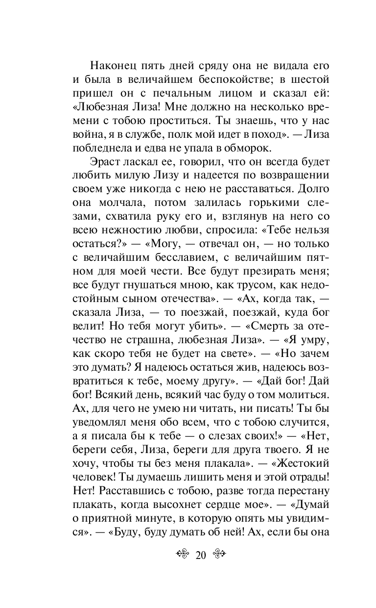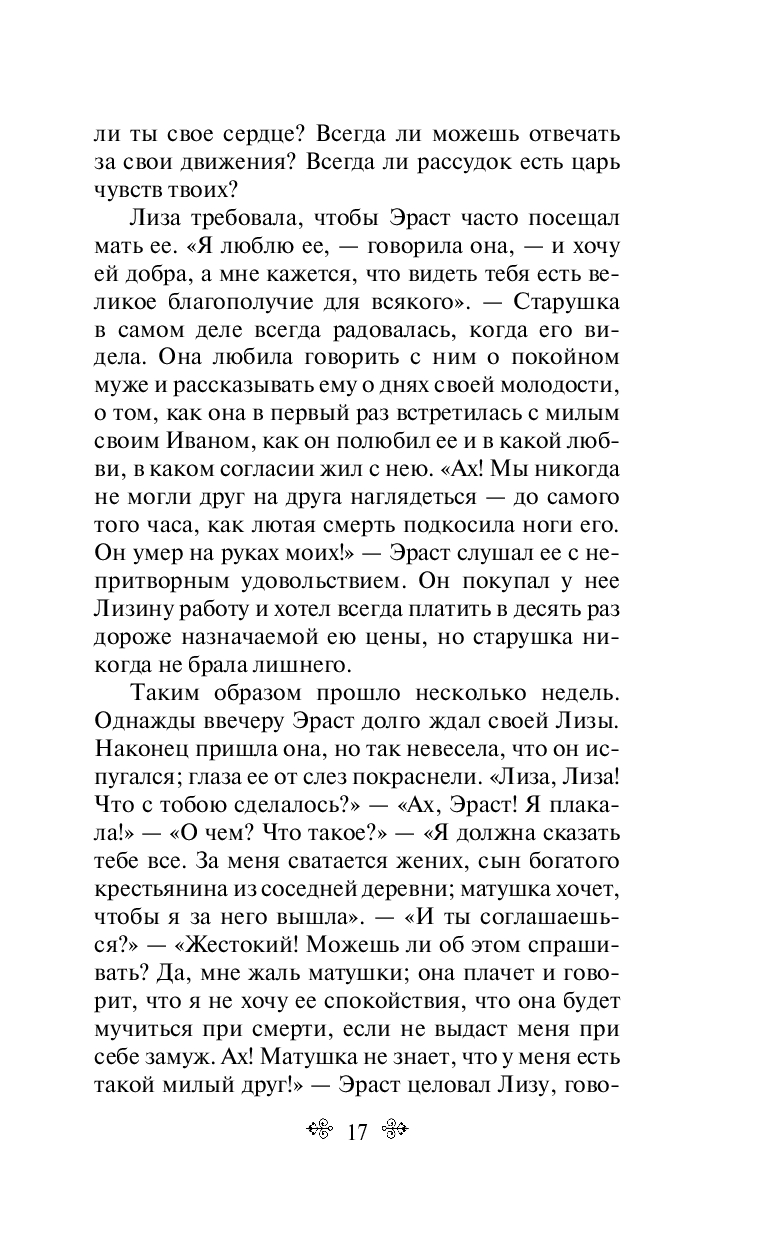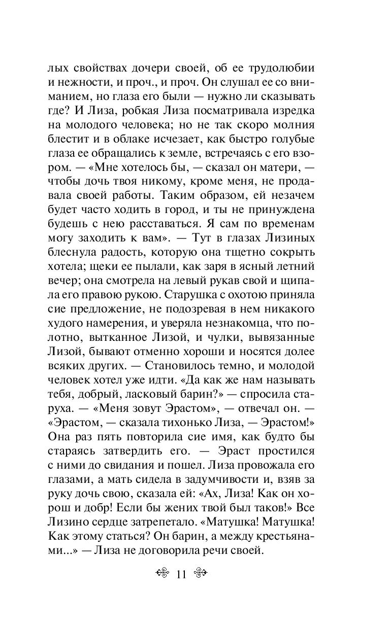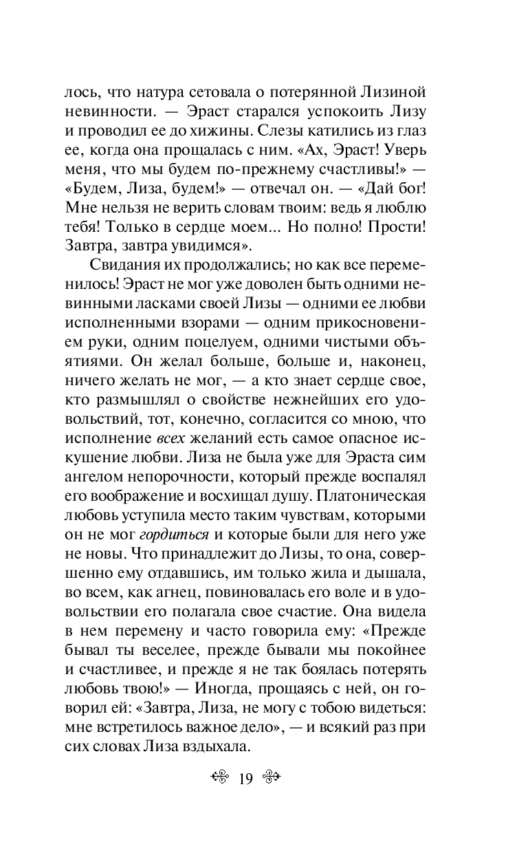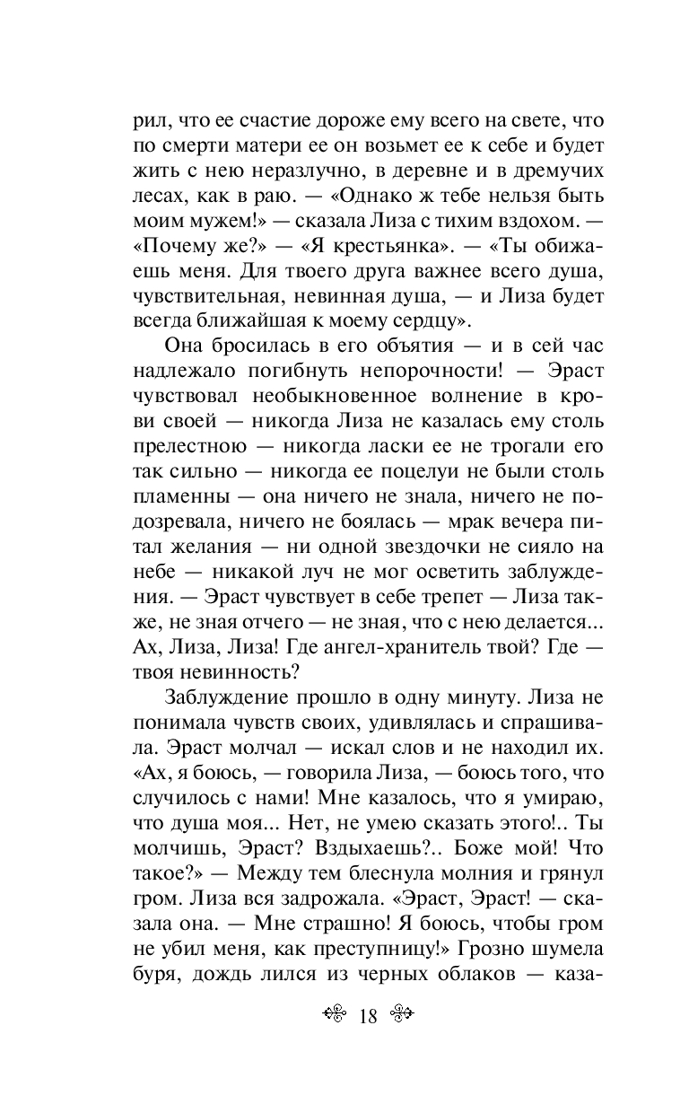 Николай Михайлович Карамзин (1766-1826) – русский гений эпохи сентиментализма, создатель новых героев – чувственных, сострадающих и лишенных морализаторства. Будь то история трагической влюбленности ("Бедная Лиза", "Лиодор") или чистой взаимной любви ("Наталья, боярская дочь"), таинственного острова Борнгольм или усмирения непокорного Новгорода, в центре его сюжетов всегда люди, их переживания и непростые решения. А в своеобразной "Моей исповеди", стилизованной под Руссо, можно усмотреть даже бесстыдную откровенность.