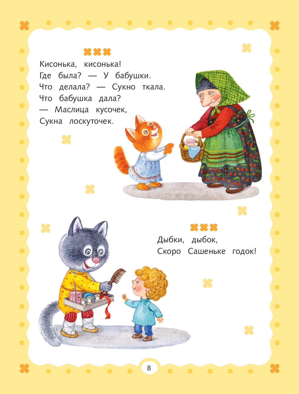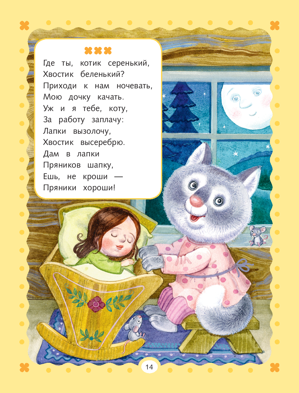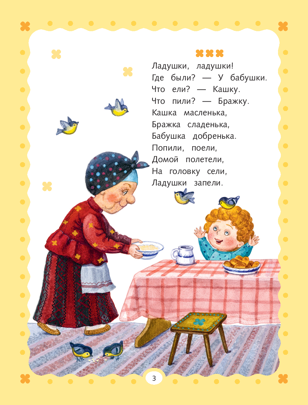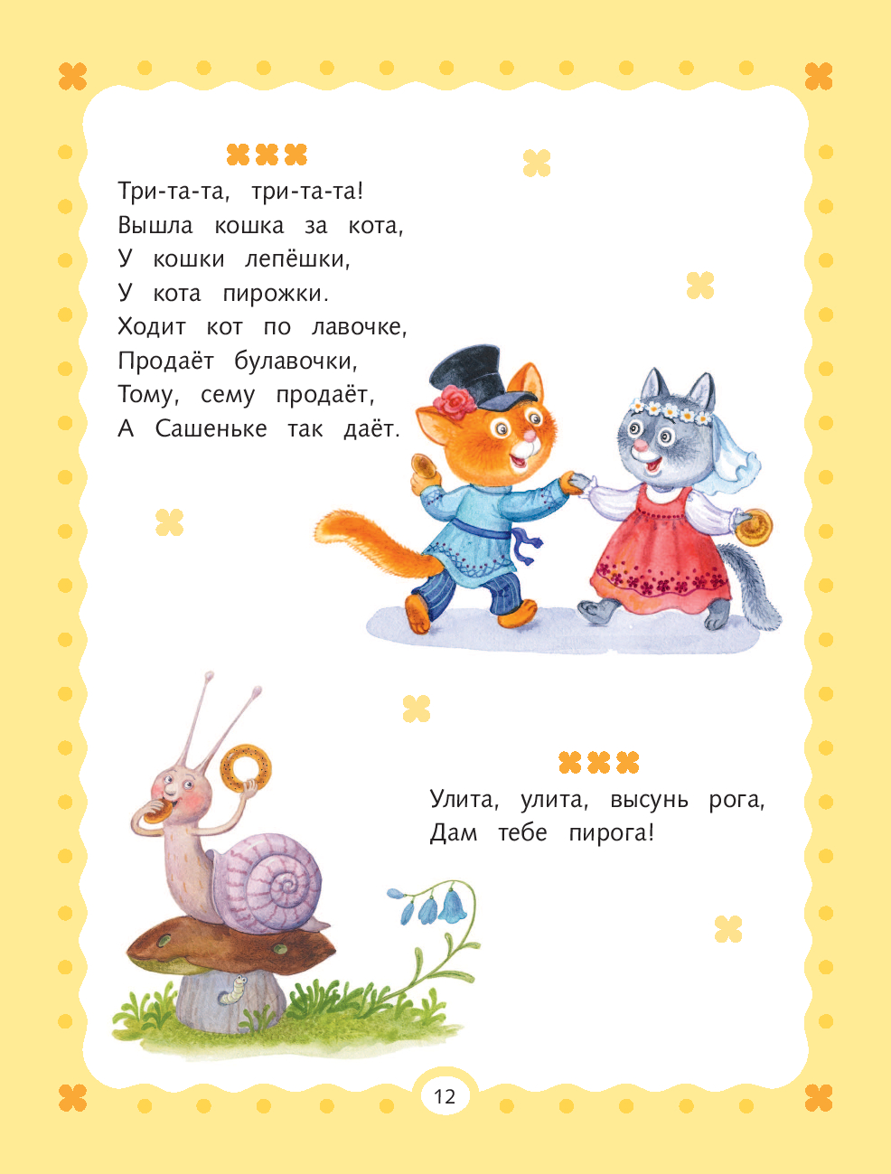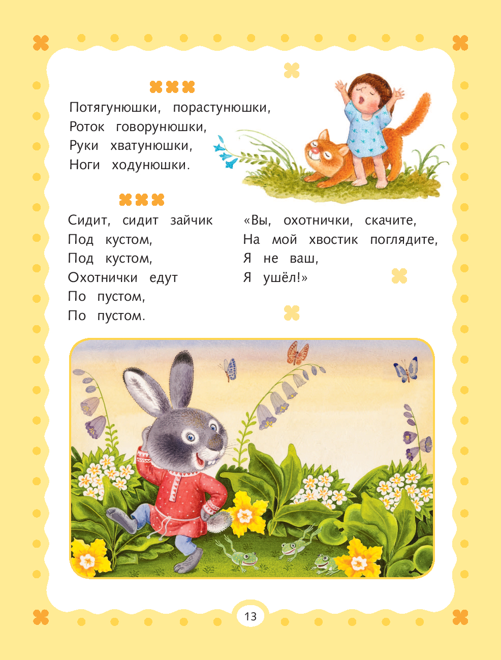 Эта книга – настоящий помощник для каждой мамы, ведь в ней собраны самые популярные разножанровые произведения для самых маленьких: ритмичные потешки, которые сопровождают малыша в течение всего дня и приучают его к родному языку; стихотворения Агнии Барто, Корнея Чуковского, Ирина Токмаковой, Зинаиды Александровой, Валентина Берестова, строчки из которых малыш с удовольствием будет повторять за мамой; короткие сказки и сказки с повторяющимися сюжетами, которые помогут ребёнку развить воображение и память, пополнить словарный запас и получить первые знания о доброте и справедливости.