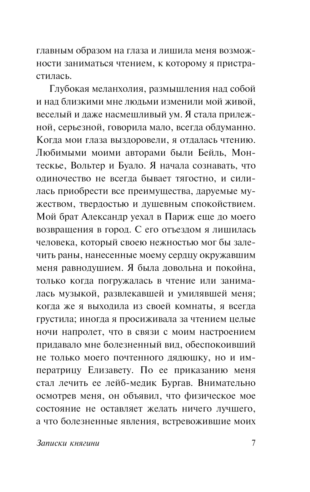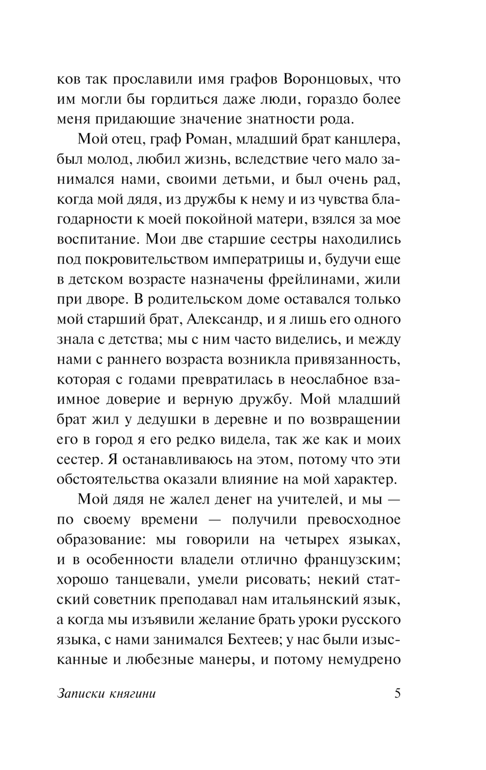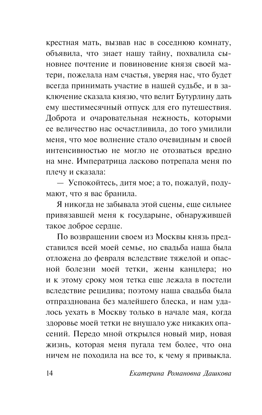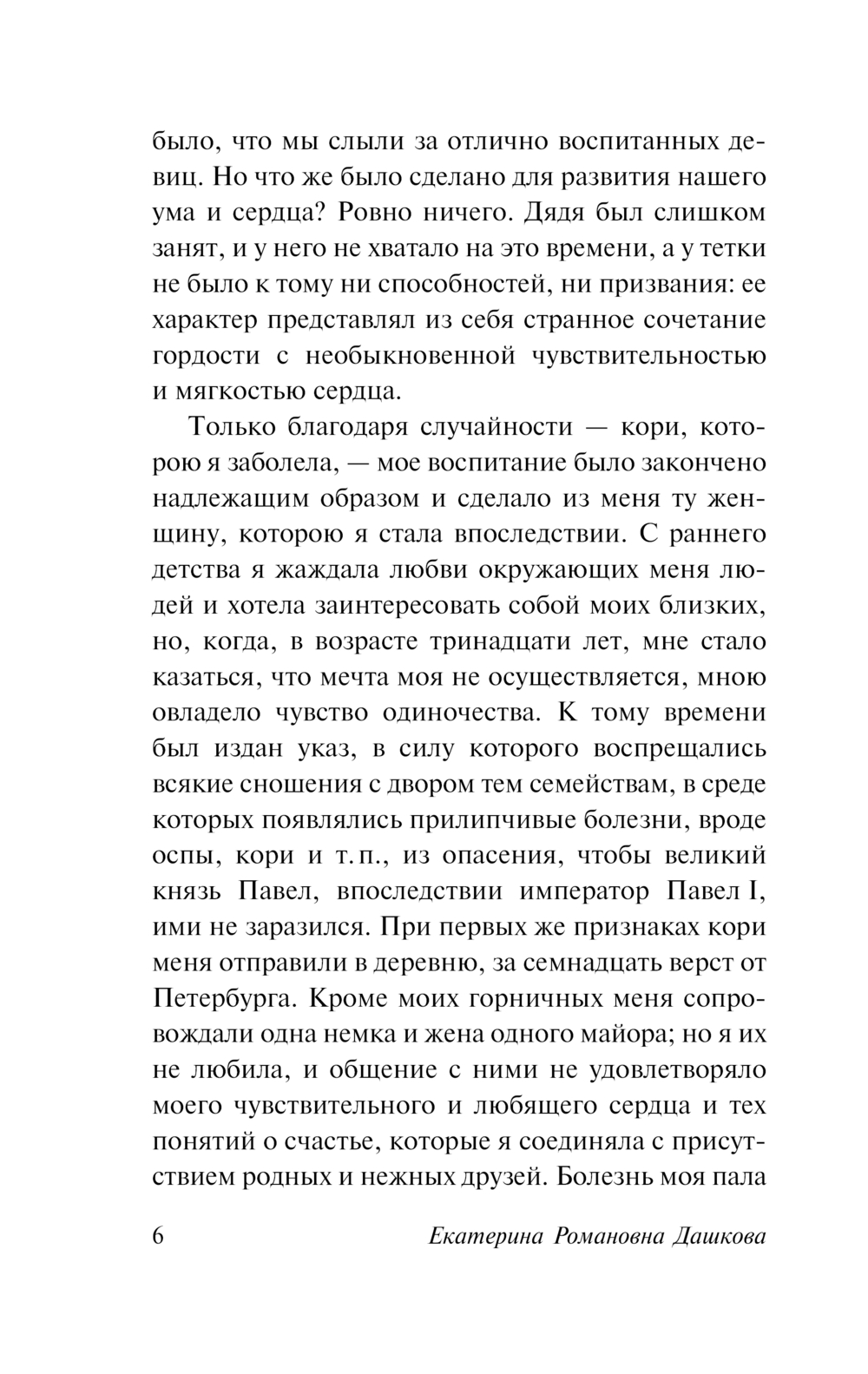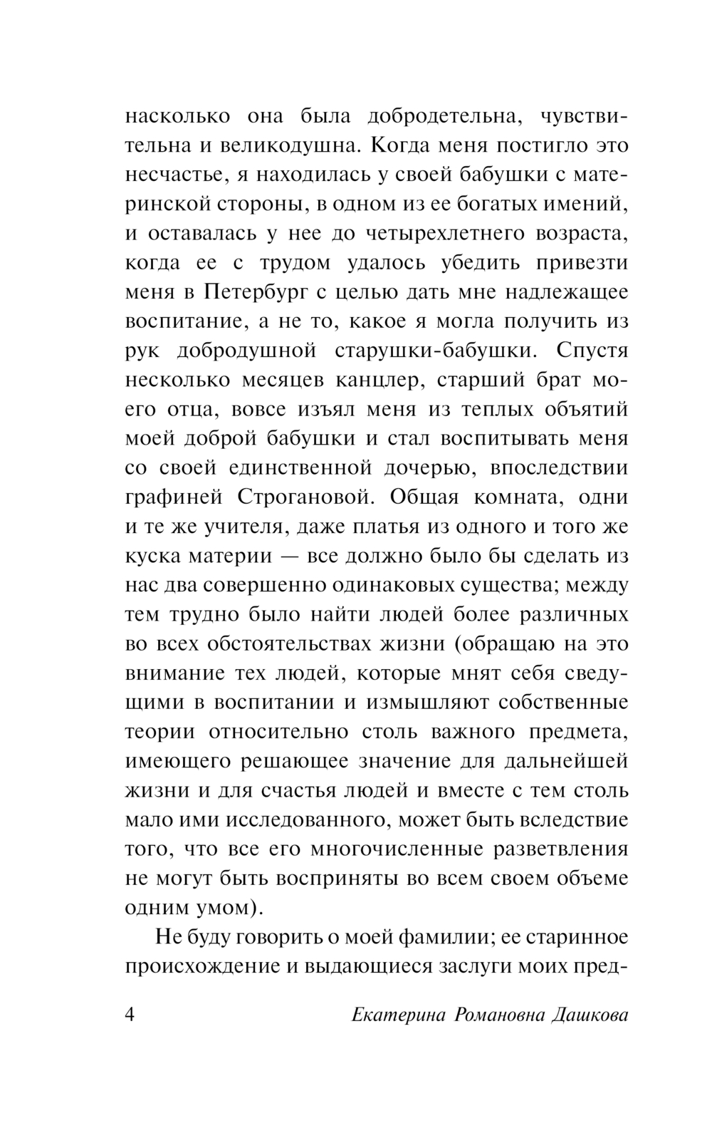 Екатерина Романовна Дашкова, урожденная Воронцова (1743-1810) – одна из самых знаменитых русских женщин XVIII века. Подруга Екатерины Великой, глава двух академий, княгиня оставила яркий след как в культуре, так и в политике. Она принимала участие в дворцовом перевороте в пользу своей царственной приятельницы, много путешествовала по странам Западной Европы, завела знакомства с известными умами своего времени – Дени Дидро, Бенджамином Франклином, Адамом Смитом. И, наконец, написала свои мемуары – знаменитые "Записки".