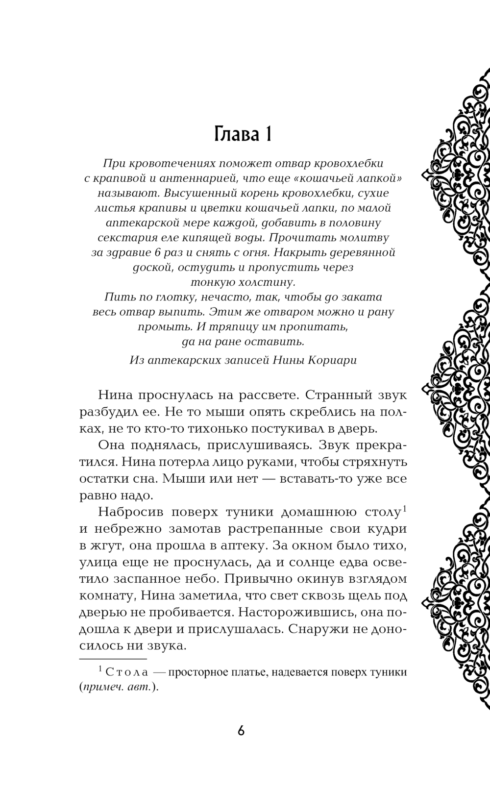 На пороге своей аптеки Нина Кориари обнаруживает смертельно раненного мужчину. Об этом ли она мечтала, едва сумев восстановить свою репутацию после недавней истории с отравленным мальчиком? В предсмертном бреду незнакомец рассказал о кольце, но никаких украшений при нем не обнаружилось. Похоже, аптекарша снова оказалась втянута в опасную интригу – смертельная охота за реликвией началась...