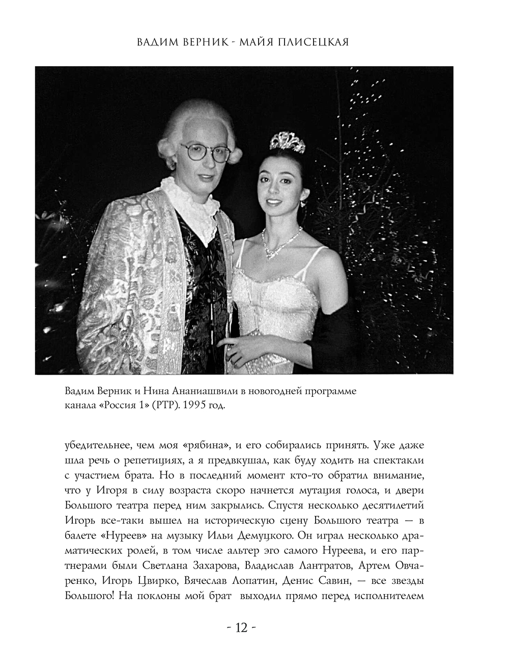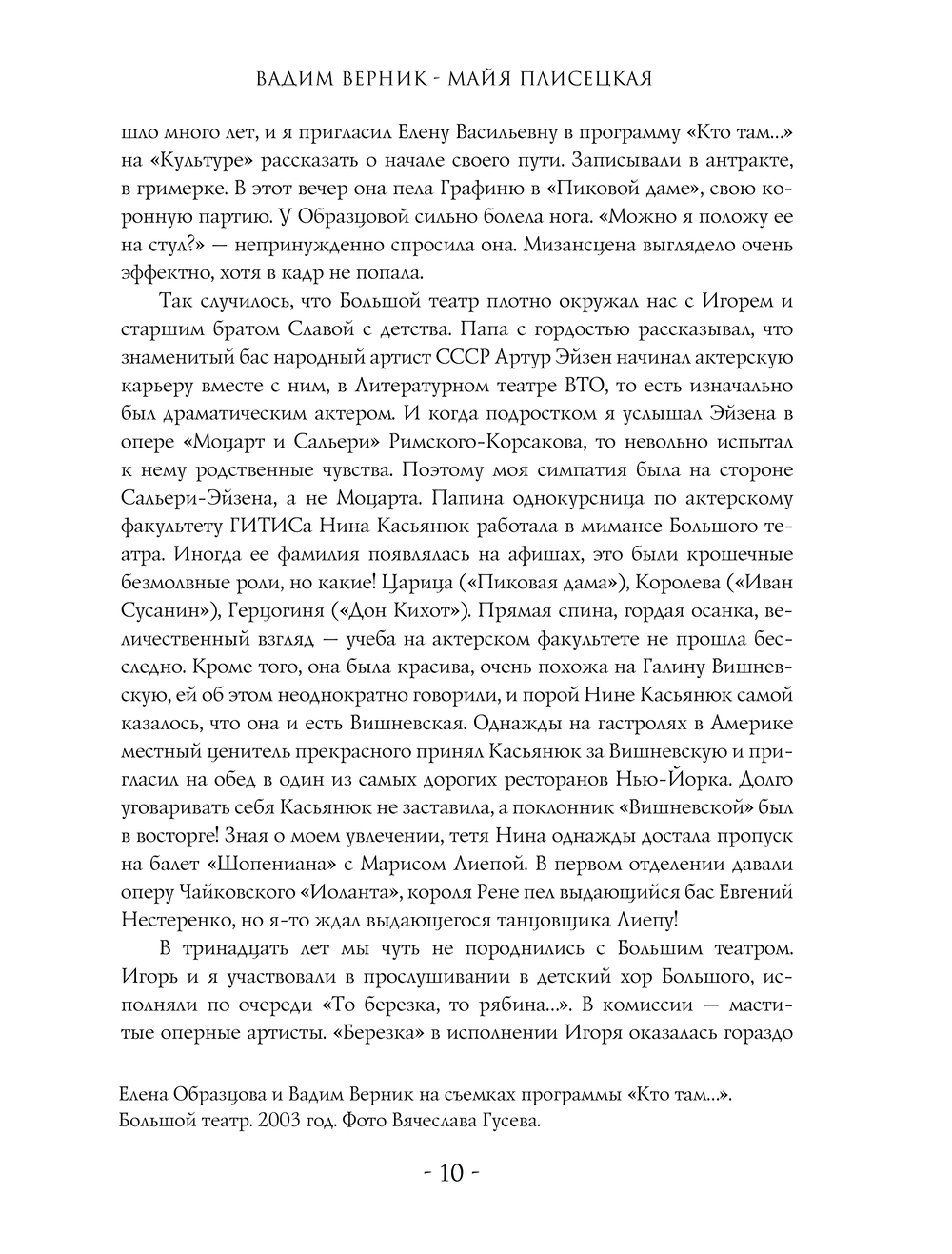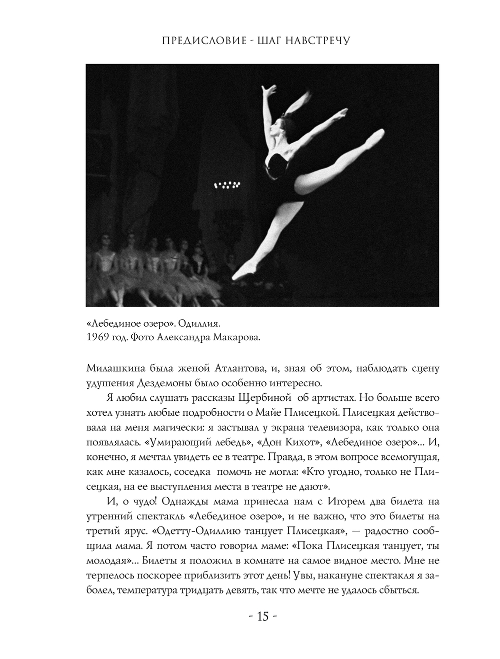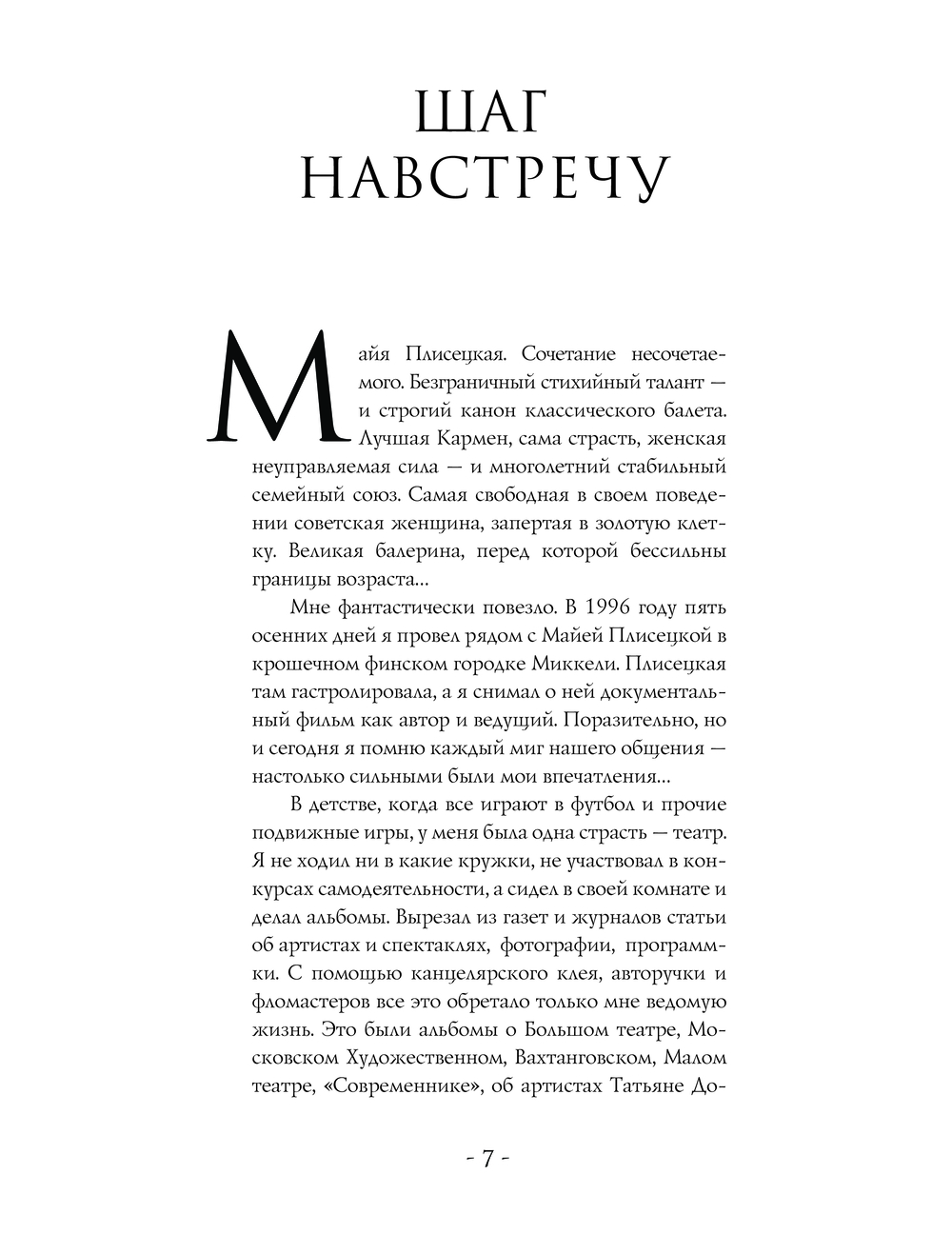 В 1996 году журналист и телеведущий Вадим Верник снял документальный фильм о Майе Плисецкой "Майя. Урок классического танца" (в телевизионном цикле "Субботний вечер со звездой"). Съемки проходили в небольшом финском городе Миккели, и на протяжении пяти дней Вернику посчастливилось много общаться с великой балериной. А спустя годы появилась идея на основании этих бесед сделать книгу, тем более, что большинство материалов не вошли в фильм из-за ограниченного хронометража. Эта книга – попытка автора показать Майю Плисецкую "своими глазами", нарисовать портрет без позирования и всевозможных мифов вокруг ее имени.