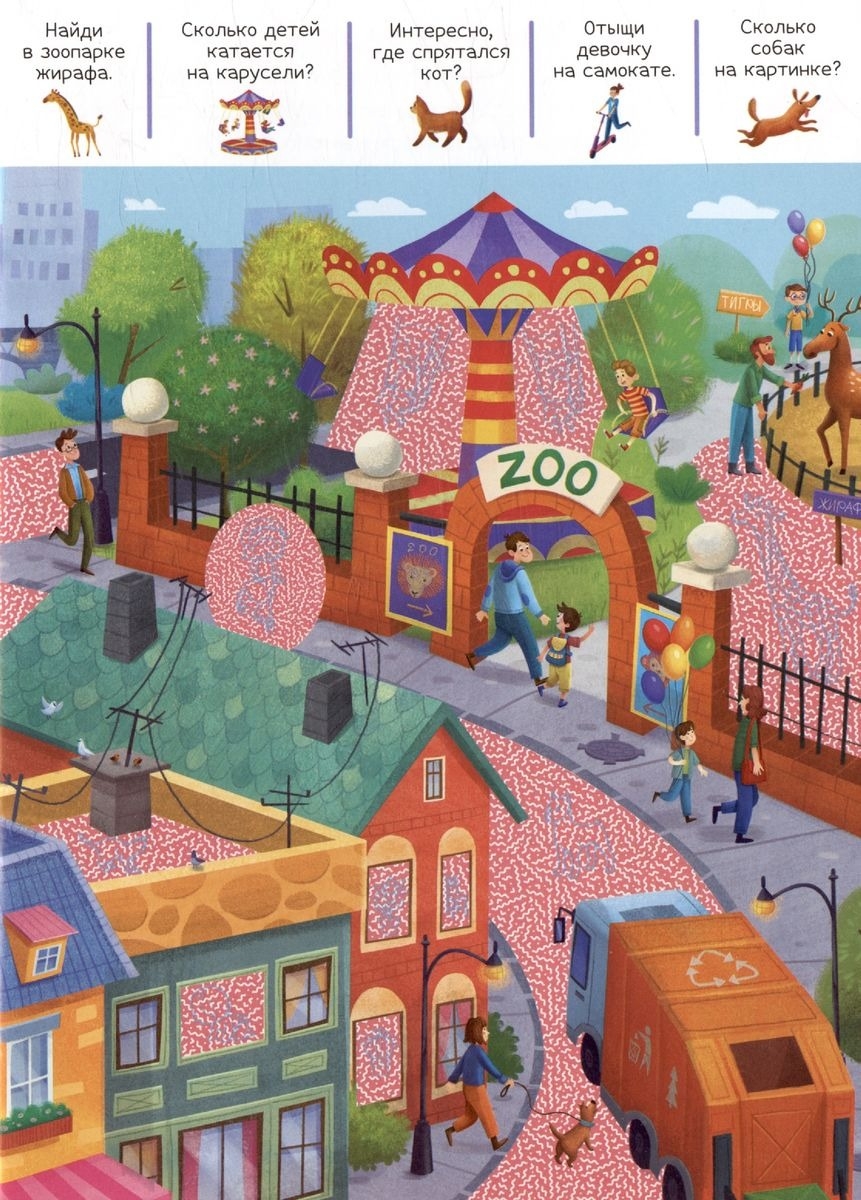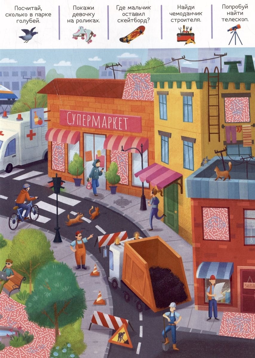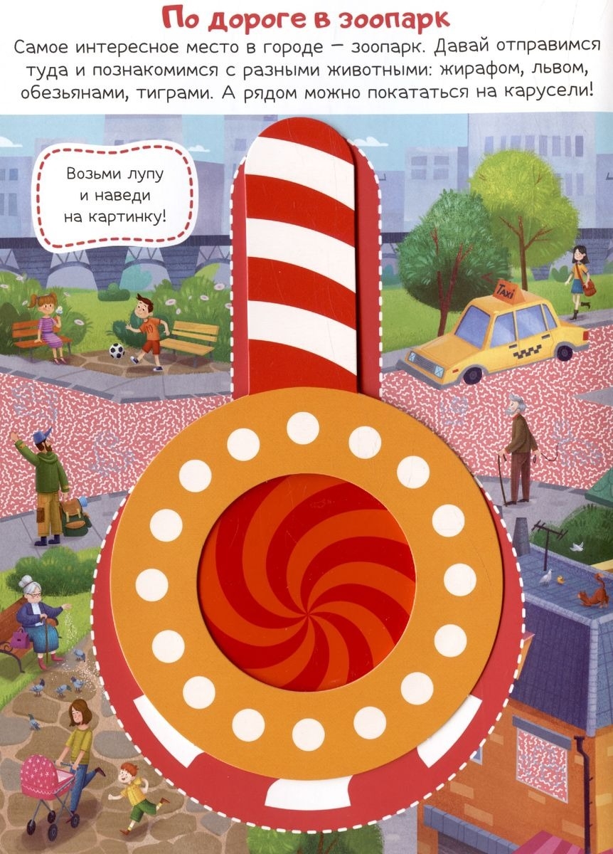 Книга "Приключения в городе" позволит малышу отправить на весёлую прогулку по городским улочкам! Рассматривая картинки, ребёнок сможет выполнять задания и находить новые детали с помощью красной лупы. Задания развивают внимательность, логику, помогают потренировать счёт.