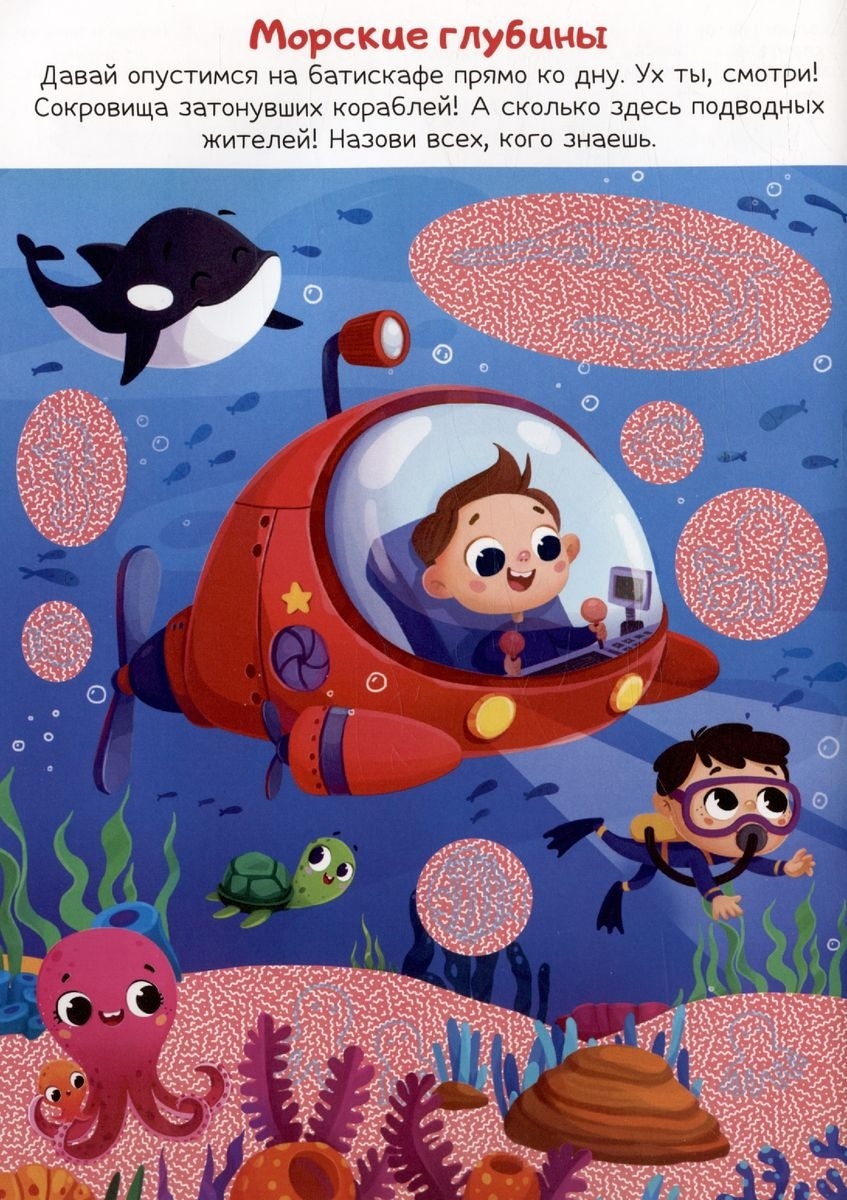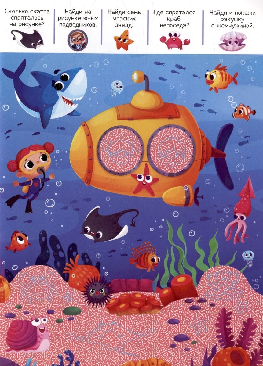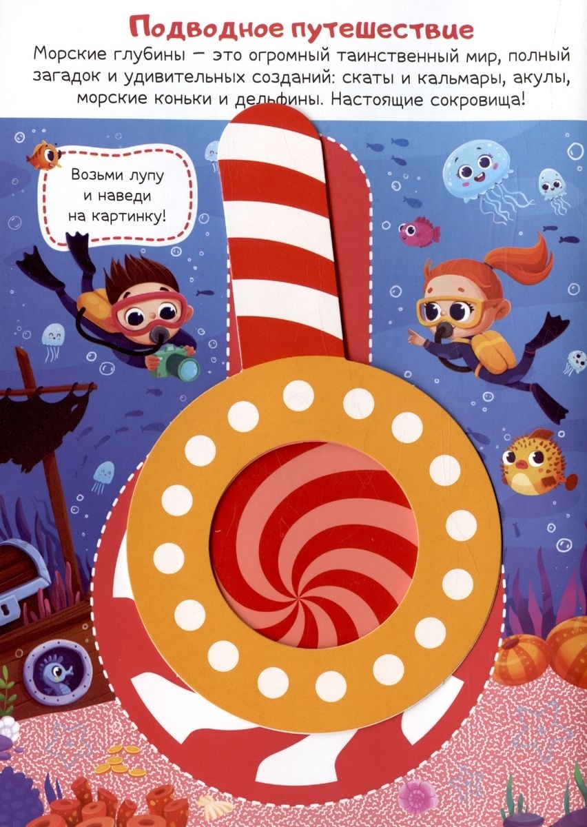 Книга "Приключения в небе и в воде" позволит малышу отправить в завораживающий полёт к далёким звёздам и нырнуть в морские глубины! Рассматривая картинки, ребёнок сможет выполнять задания и находить новые детали с помощью красной лупы. Задания развивают внимательность, логику, помогают потренировать счёт.