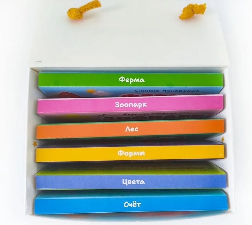 В наборе 6 книжек: "Формы", "Счёт", "Дом", "Овощи", "Цвета", "Ягоды и фрукты". Внутри каждой книжки – базовая информация и подборка самых важных слов по теме, яркие фотографии и интересные окошки. Так изучение нового и пополнение словарного запаса станет для ребёнка увлекательным занятием.
