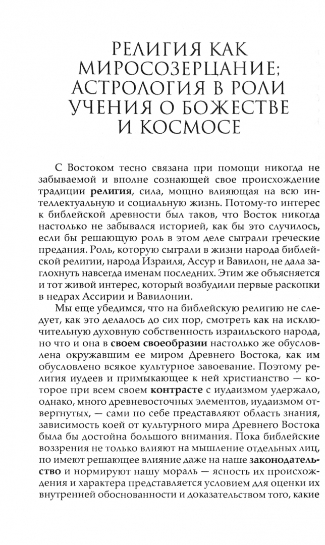 Гуго Винклер (1863-1913) – основатель немецкого Переднеазиатского общества и один из основоположников реакционного направления в востоковедении – панвавилонизма. В издании представлен обзор Г. Винклера истории и культуры Древнего Вавилона в переводе Г.Г. Генкеля. Вопрос всемирного значения культуры Вавилона и ее влияния на развитие соседних народностей в данной интерпретации превратился, в сущности, в абсолютно другой – вопрос зависимости всех цивилизаций земного шара от вавилонской культуры. Европейская средневековая астрология, восходящая к вавилонской "астральной" науке; отражение различных мифов и легенд в финикийских сказаниях и Библии; влияние вавилонского эпоса на героическую литературу соседних народов и др. Сопровождается статьей Бориса Александровича Тураева, создателя отечественной школы истории Древнего Востока, о Вавилонской религии и культуре.