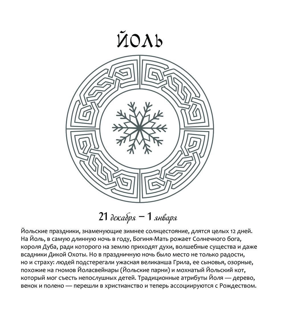 Во все времена люди верили в мистическую силу природы и придавали важное значение смене тьмы и света и чередованию времен года. Так возникло Колесо года – ежегодный цикл восьми древних праздников. Ощути связь с оставшимися далеко в прошлом эпохами и магией друидов и познай мощь и красоту старинных традиций и природной магии благодаря уникальной коллекцией авторских иллюстраций. Каждый праздник сопровождается кратким описанием, раскрывающим глубинный смысл древних обрядов.