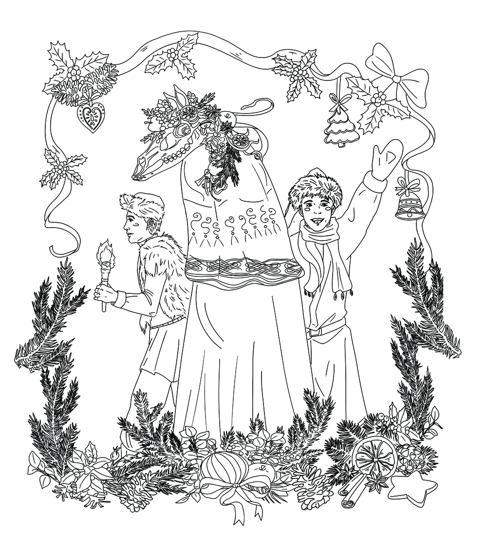 Погрузись в магичекую атмосферу праздников Колеса года вместе с этой чарующей раскраской!