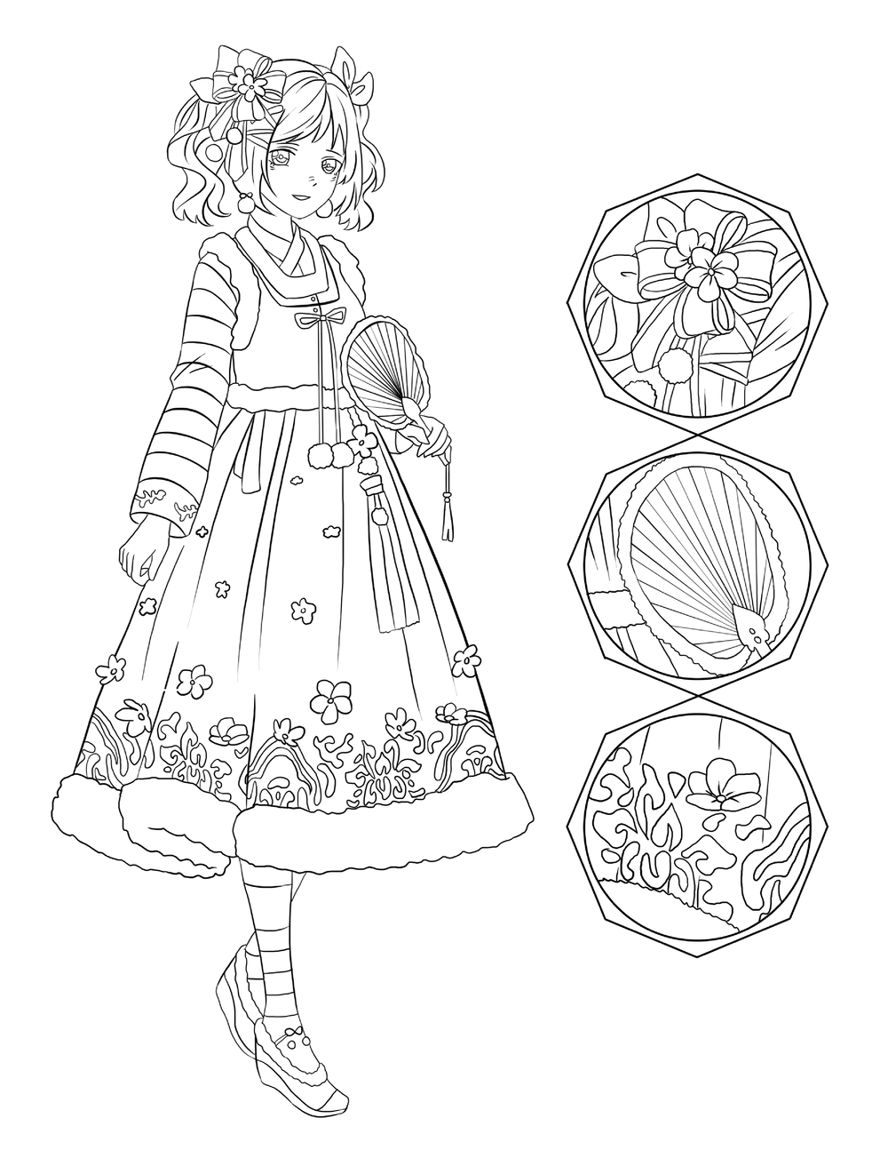 В ней ты найдешь иллюстрации персонажей и шикарные наряды из игры, которые ты можешь раскрасить в своем собственном стиле.