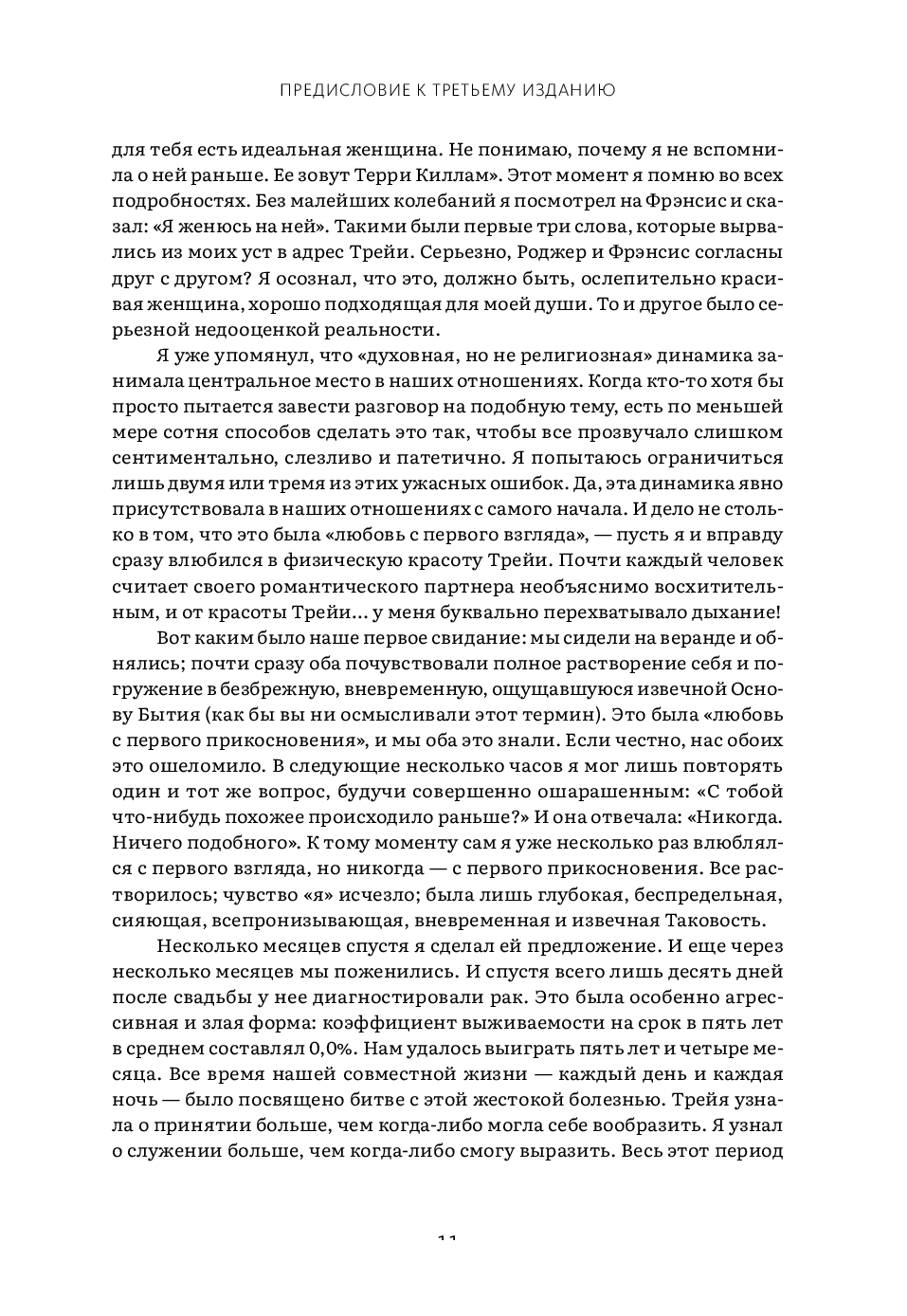 Через десять дней после свадьбы у Трейи, жены Кена Уилбера, обнаружили рак. Следующие пять лет стали испытанием: непрекращающаяся борьба, сотни медицинских процедур, необходимость смириться с неизбежным. Знаменитый философ почти прекратил писать, но после кончины Трейи появилась книга, в которой он воссоздал завораживающую картину совместного проживания болезни.