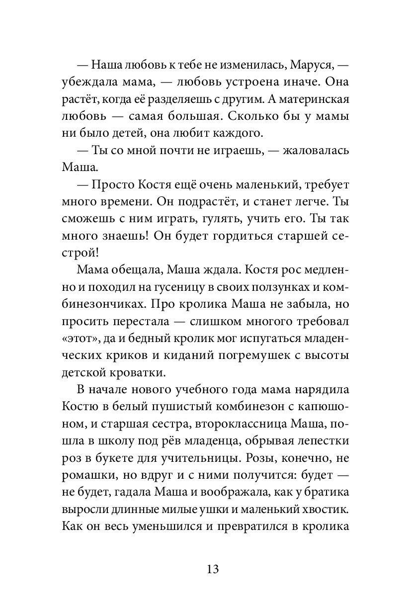 Восьмилетняя Маша просила у мамы с папой кролика, но вместо питомца к началу нового учебного года получила младшего брата Костю. У школы Маша встретила женщину с клеткой, в которой сидели три кролика. В обмен на одного из них Маша поделилась с незнакомкой своим желанием, пришла домой и обнаружила, что братик исчез, а родители про него не помнят.