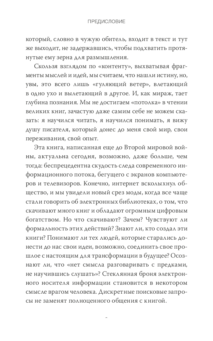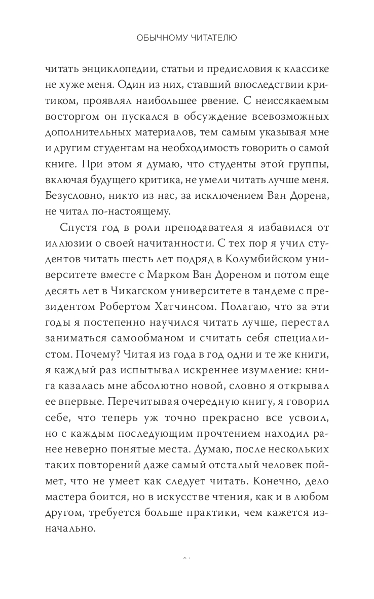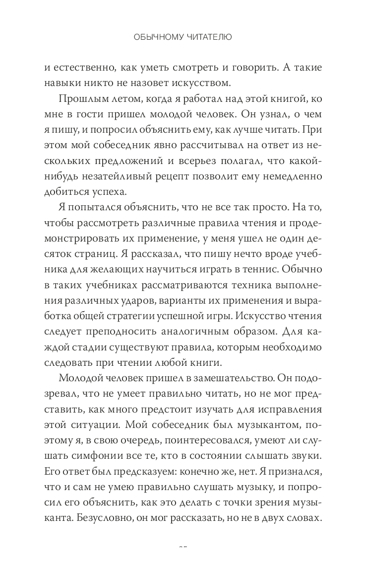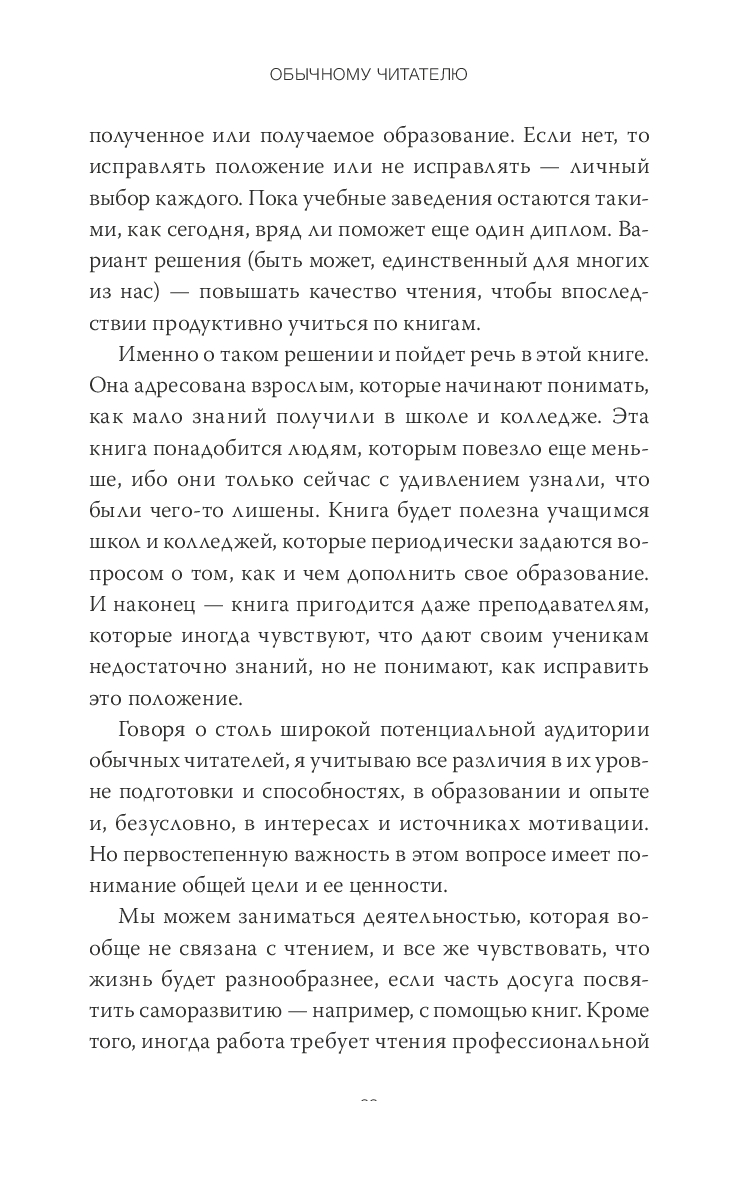 Чтобы настроиться на «волну» автора и понимать больше, требуется умение читать активно. Именно для этого написал свою книгу Мортимер Адлер, американский философ, редактор и преподаватель, всю свою жизнь посвятивший тому, чтобы научить людей любить и понимать книги (впоследствии он возглавил редакционный совет энциклопедии "Британника").