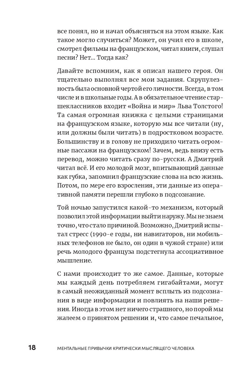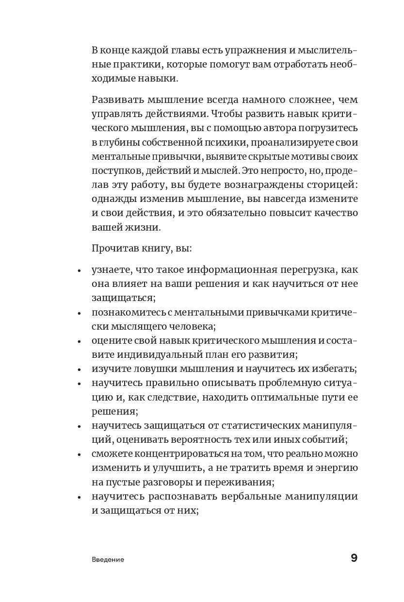 Автор книги Максим Киселев, бизнес-тренер, автор курса "Критическое мышление", уверен, что, корректируя собственные ментальные установки, можно научиться контролировать поступающие данные, а также хорошо в них ориентироваться. В книге даны упражнения и мыслительные практики, которые помогут избежать ловушек мышления и обращать кризисные ситуации себе на пользу с опорой на анализ и осознанность. Эти навыки пригодятся как для принятия важных бизнес-решений, так и для распознавания ложной информации в повседневной жизни.