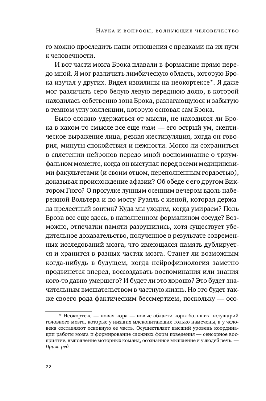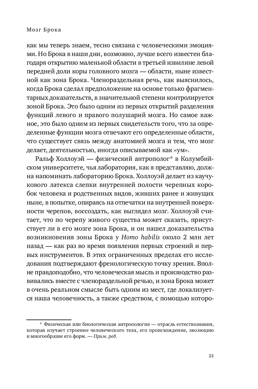 На все эти размышления Карла Сагана натолкнул визит в парижский Музей человека. В частности, его потрясла коллекция Поля Брока, где находится и мозг самого Брока – великого антрополога, особенно знаменитого открытием в мозге человека области, отвечающей за членораздельную речь.