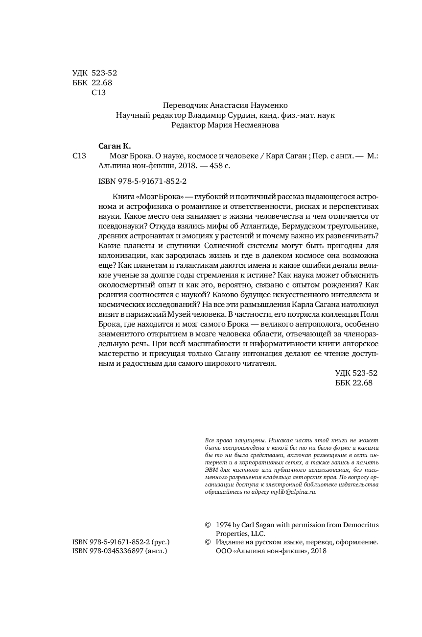 Книга "Мозг Брока" – глубокий и поэтичный рассказ выдающегося астронома и астрофизика о романтике и ответственности, рисках и перспективах науки.