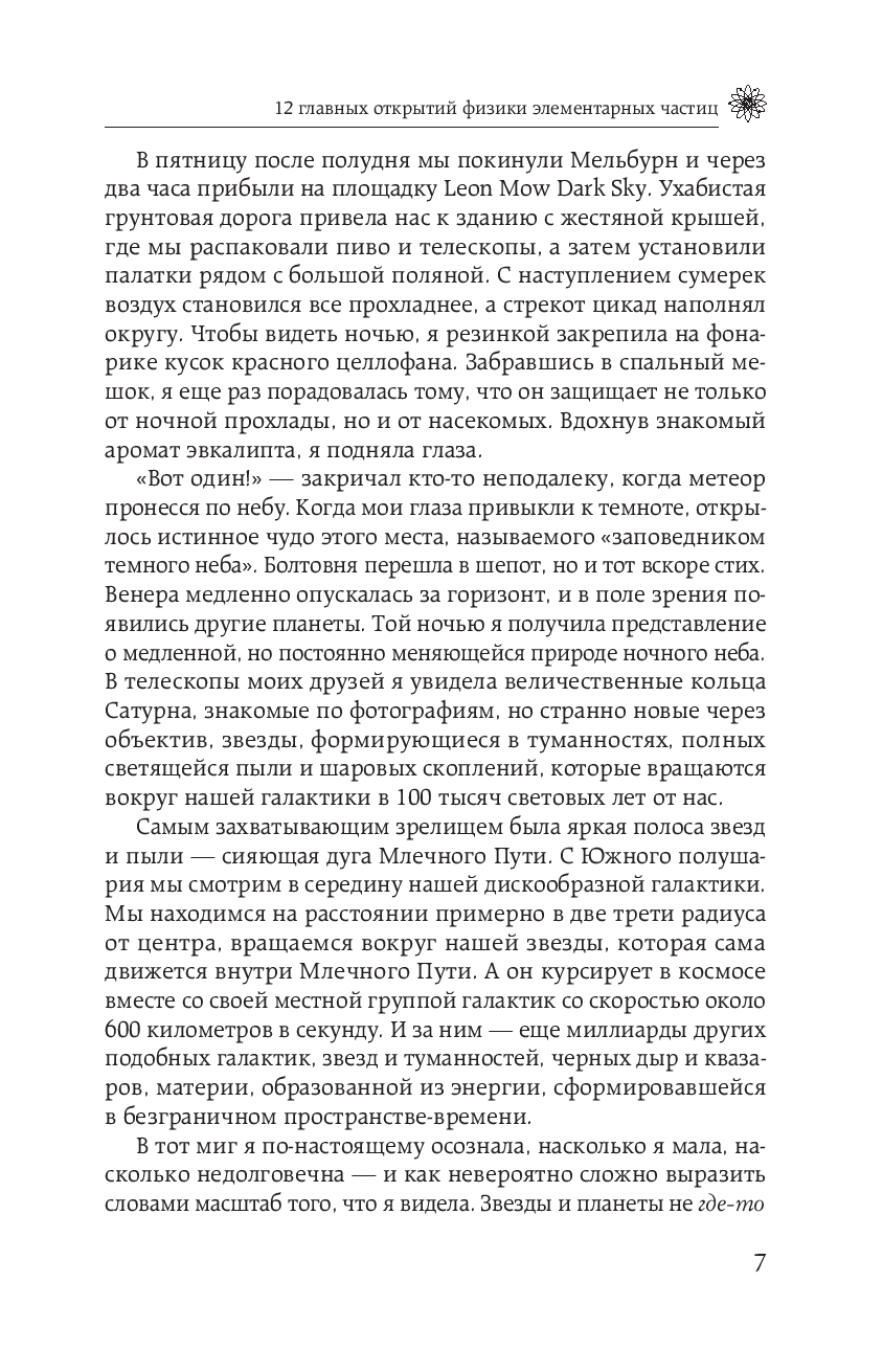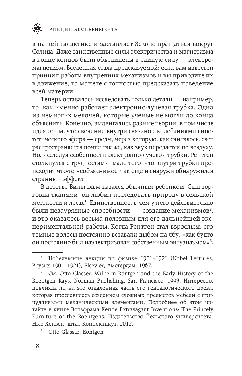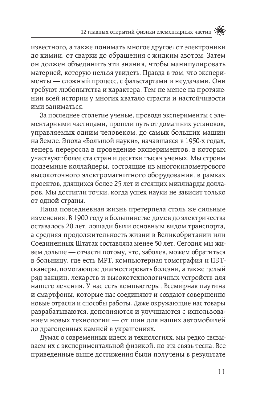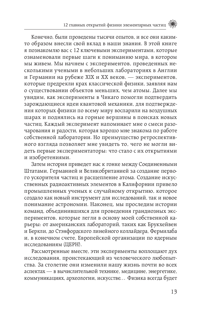 Автор знакомит нас с людьми, которые благодаря сочетанию гениальности, настойчивости и удаче поставили эти новаторские эксперименты: от полетов на воздушных шарах в поисках новых частиц, до счастливого открытия рентгеновских лучей в немецкой лаборатории; от гонки за расщепление атомного ядра до поисков третьего поколения материи.