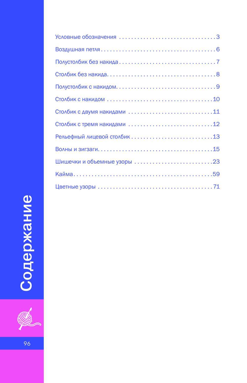 В этой книге собрана коллекция из 45 узоров, связанных крючком. Вы сможете создать свою коллекцию из волн и зигзагов, шишечек и объемных узоров, каймы, цветных узоров. А также научитесь вязать элементы, которые придают полотну изысканность и оригинальность, – рельефный лицевой столбик с накидом, декоративный узел, пышные перекрещенные столбики, ракушки-лимпет и другие – в дальнейшем их можно использовать для любых узоров.