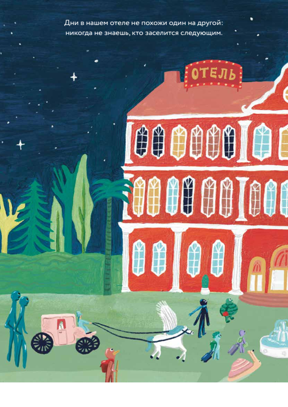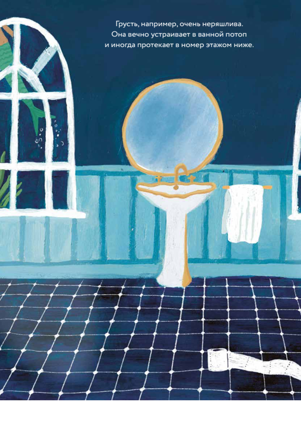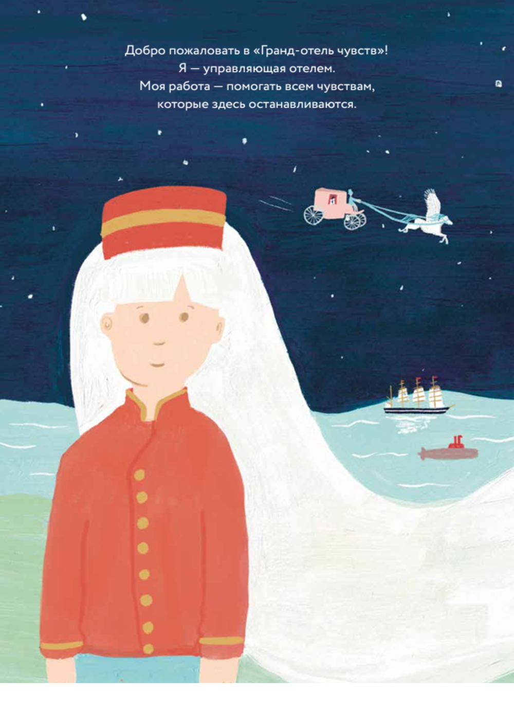 Добро пожаловать в "Гранд-отель чувств"! Здесь может остановиться любое чувство. Конечно, каждый гость особенный и у каждого есть уникальные потребности. Злость, например, ужасно шумная, и ей нужно много места. Грусть говорит очень тихо и вечно устраивает потоп. А Тревога постоянно меняет свой облик и обожает быть в центре внимания. Благодарность любит бродить на природе; ты никогда не знаешь, когда она может присоединиться к тебе.