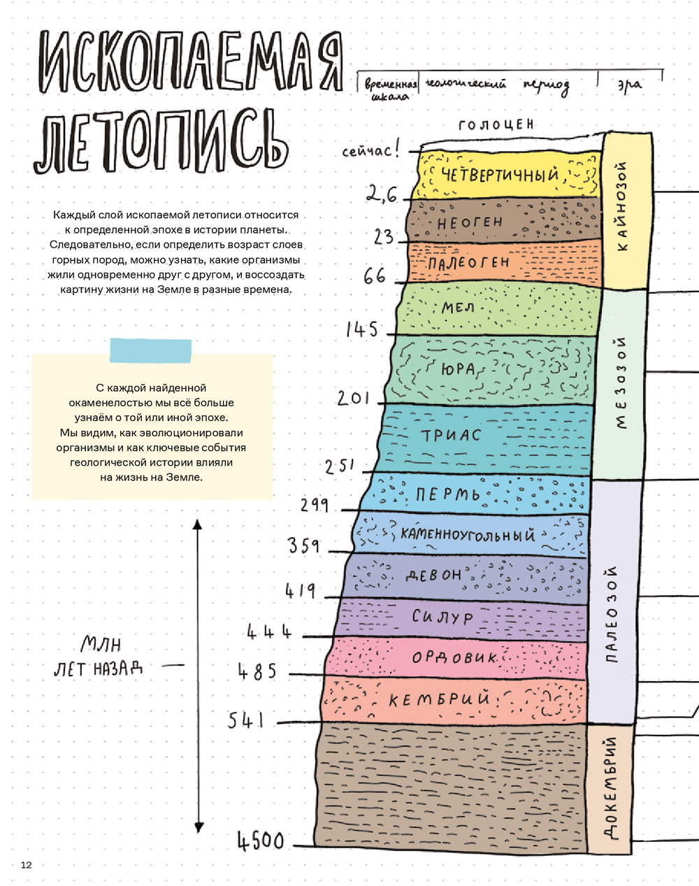 В этой прекрасно иллюстрированной книге большого формата рассматриваются все невероятные вещи, которые ученые узнали из летописи окаменелостей: способы, которыми континенты дрейфовали, сливались и снова разделялись. Формы жизни, которые развились, и великие события, которые их уничтожили. Понятные, краткие тексты сопровождаются теплыми и занимательными иллюстрациями Софи Уильямс.