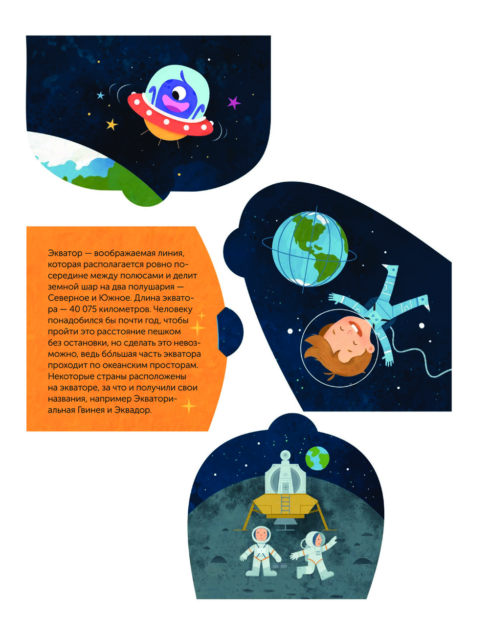 Основные факты о Земле, начиная от ее возникновения и заканчивая тем, на скольких языках люди говорят на Земле, изложены в простой и доступной форме и дополнены понятными ребенку сравнениями и сопоставлениями. Это развивает у детей не только образное, но и визуально-пространственное мышление.