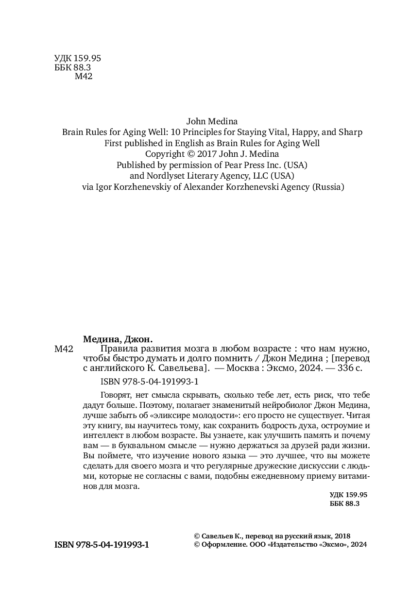 | Название в оригинале | Brain Rules for Aging Well: 10 Principles for Staying Vital, Happy, and Sharp |