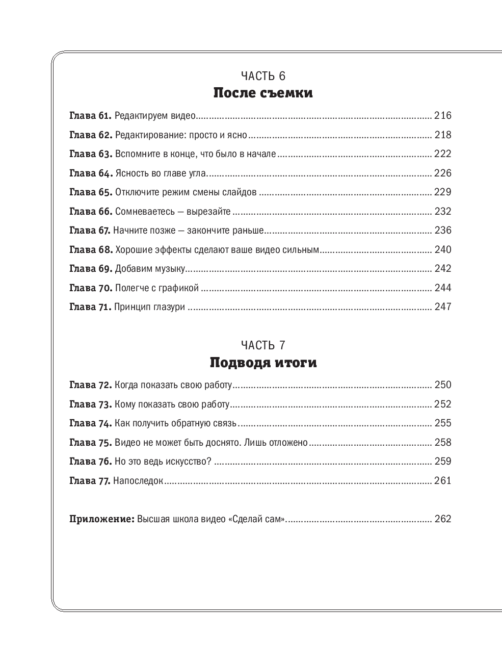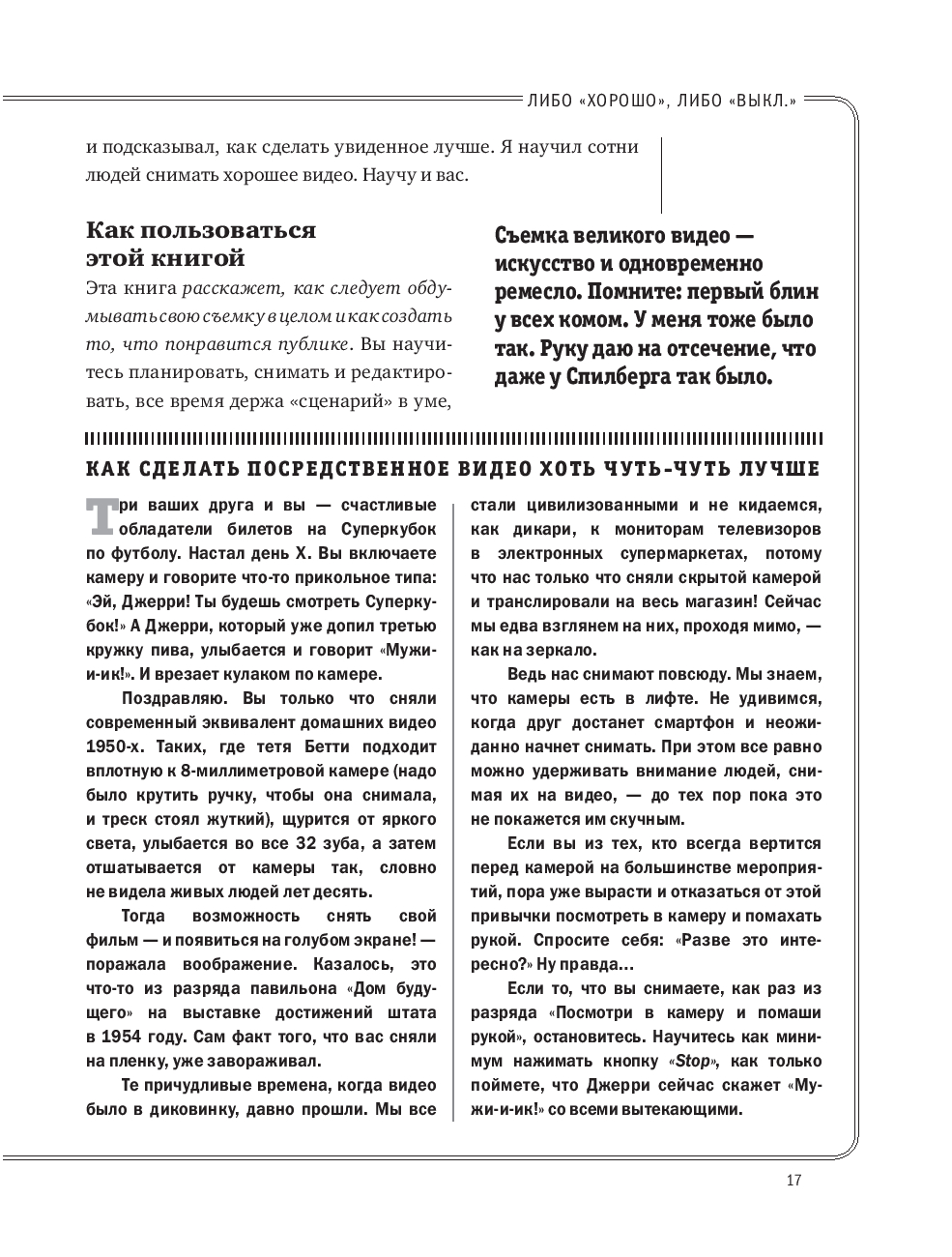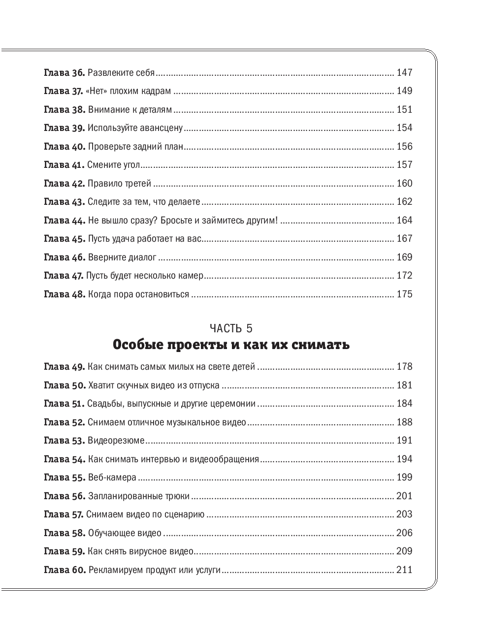 Автор книги уверен, что видео – мощный инструмент коммуникации, который может изменить ход истории, вдохновить и помочь общению. Снимаете ли вы день рождения своего ребенка, делаете ли промо-ролик какого-нибудь продукта или создаете сенсационное видео для YouTube, книга поможет вам не просто улучшить видео, а сделать его идеальным!