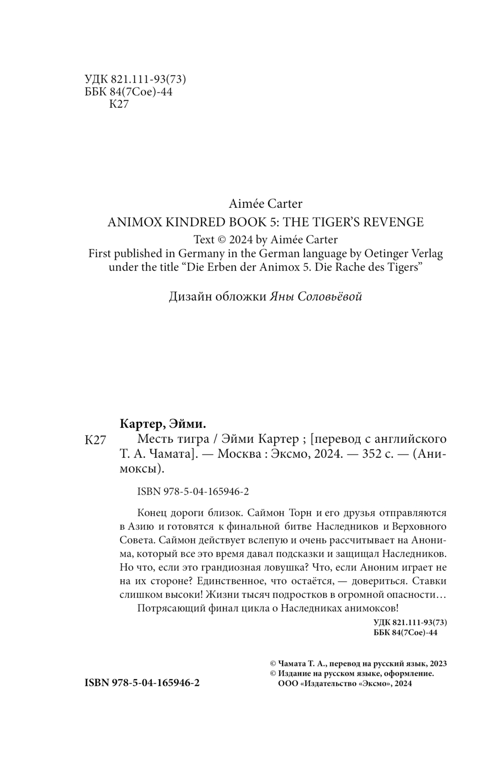 | Название в оригинале | Animox Kindred Book 5: The Tiger’s Revenge |