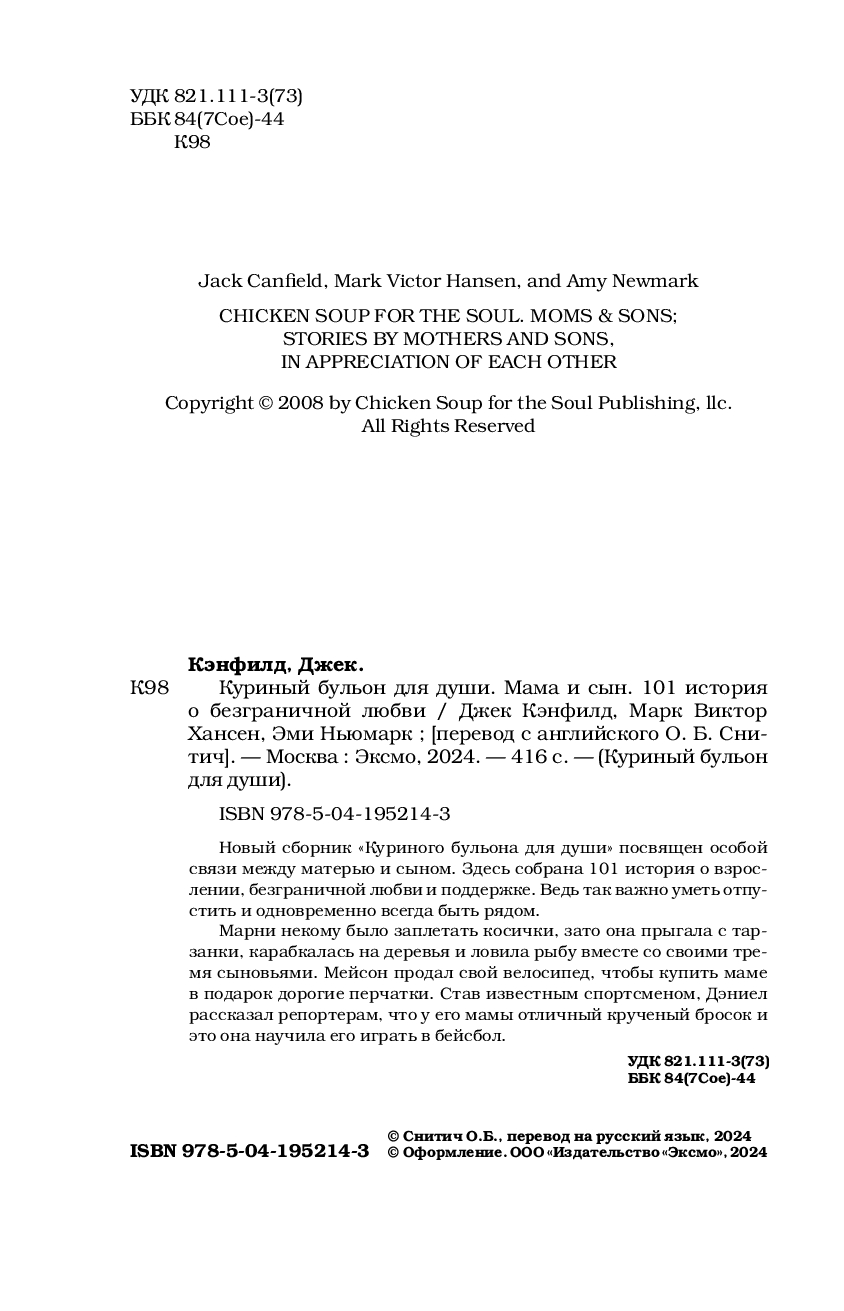 | Название в оригинале | Chicken Soup For The Soul. Moms & Sons |