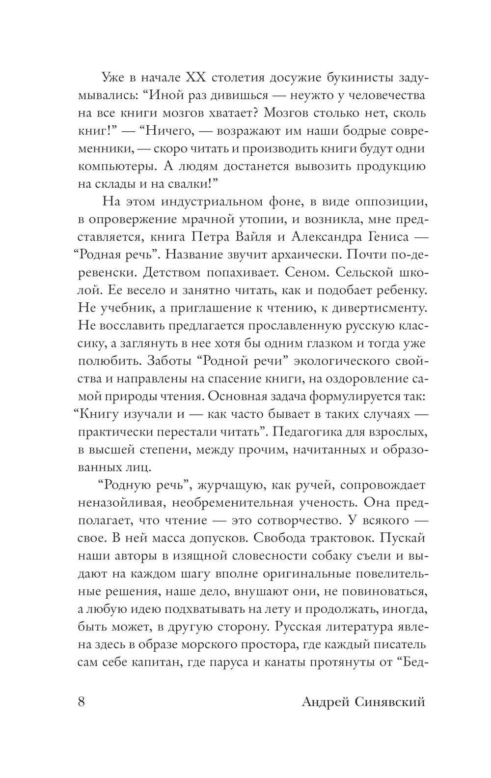 Авторы "Родной речи" попытались снова пробудить у несчастных чад (и их родителей) интерес к отечественной изящной словесности. Похоже, попытка увенчалась полным успехом. Остроумный и увлекательный "антиучебник" Вайля и Гениса уже много лет помогает выпускникам и абитуриентам сдавать экзамены по русской литературе.