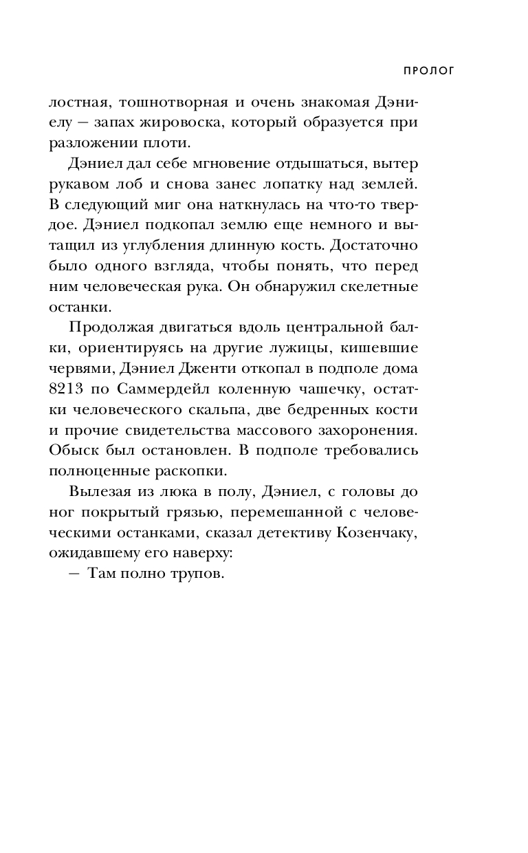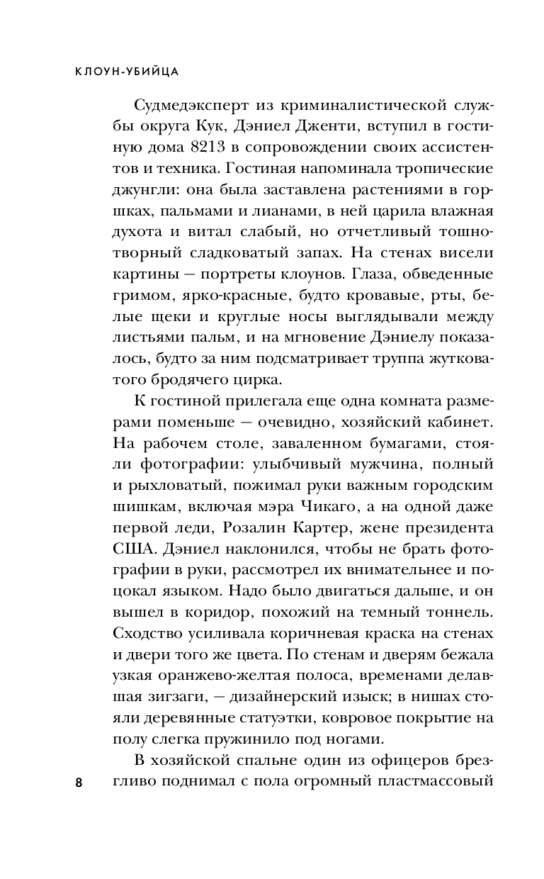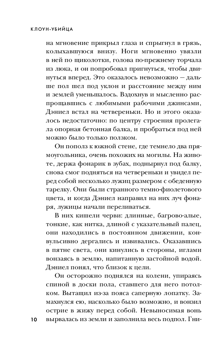 Лишь убийство 15-летнего Роберта Писта, хорошего мальчика из благополучной семьи, положило начало полицейской слежке за Гейси, а затем признанию в серийных убийствах и одному из самых известных судебных процессов в истории США. Шокирующая и откровенная, эта книга, основанная на воспоминаниях полицейских, адвокатов и прокуроров по делу Джона Гейси, рассказывает полную историю печально известного Клоуна-убийцы.