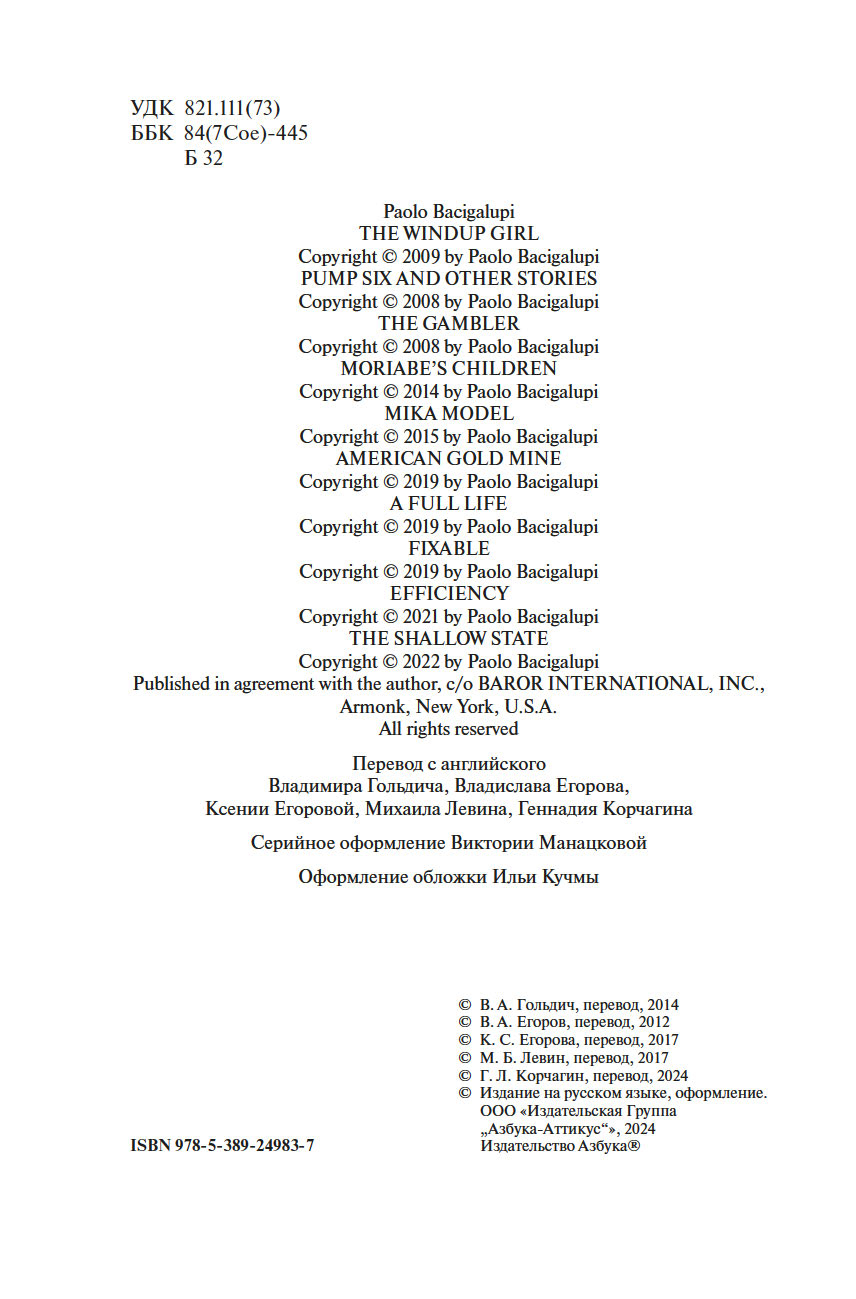Роман "Заводная" удостоен премий "Небьюла", "Хьюго", мемориальной премии Кэмпбела и десятка других. Награждены премиями и другие произведения из вошедших в этот сборник: "Азартный игрок", "Помпа номер шесть", "Полный карман дхармы".