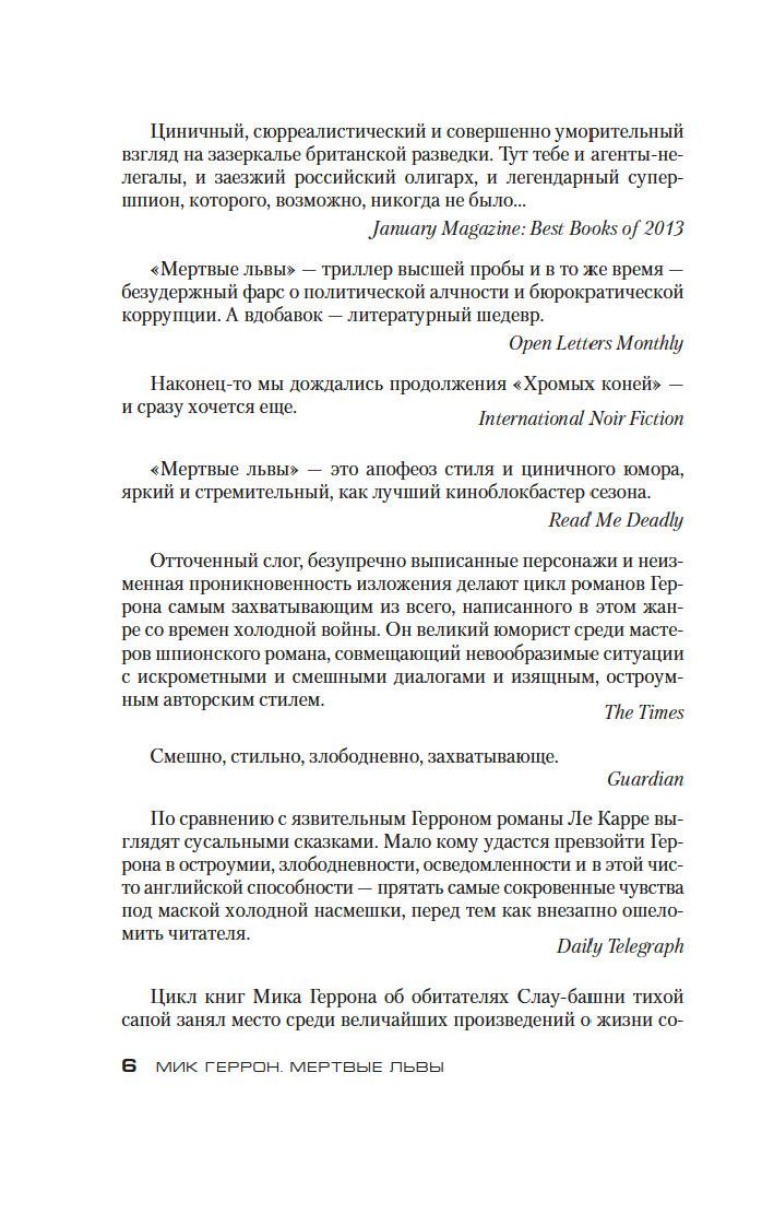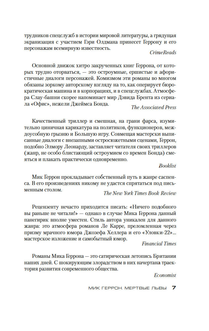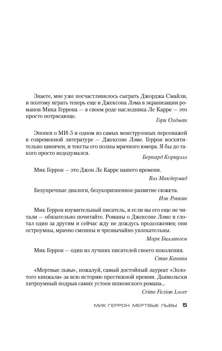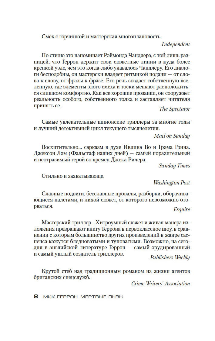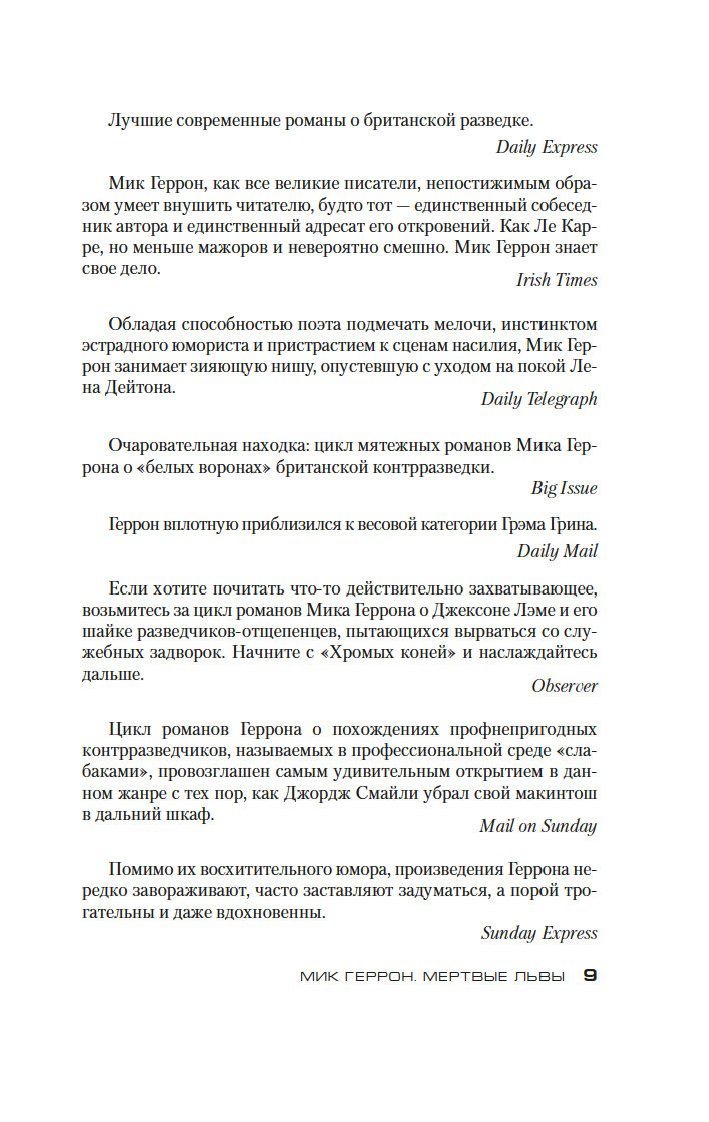 Мика Геррона называли "Джоном Ле Карре нашего времени" и новой надеждой британской литературы, сравнивали с Рэймондом Чандлером и Кингсли Эмисом, Ивлином Во и Грэмом Грином, Элмором Леонардом и Джозефом Хеллером. Герроновские романы – это "смешная, на грани фарса, изумительно циничная карикатура на политиков, функционеров, междоусобную грызню и Большую игру" (Booklist), а его герои ("хромые кони", они же слабаки из Слау-башни) – это проштрафившиеся контрразведчики, наказанные "за пристрастие к наркотикам, алкоголю или распутству; за интриги и предательство; за недовольство и сомнения; а также за непростительную оплошность". Надзирает над ними Джексон Лэм – "Фальстаф наших дней" (Sunday Times) и "один из самых монструозных персонажей в современной литературе" (Бернард Корнуэлл).