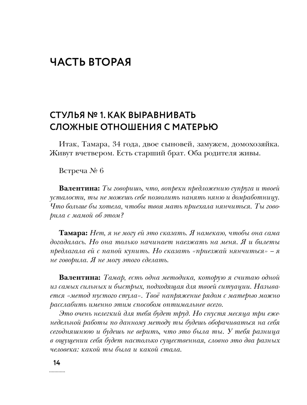 Валентина Кляйн – практикующий клинический психолог, гештальт-терапевт. В этой книге автор на практических примерах рассказывает о том, что такое метод пустого стула и как он помогает справляться с травмами.