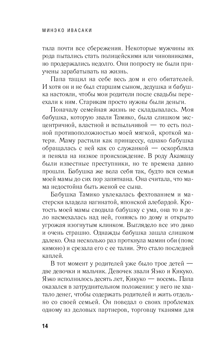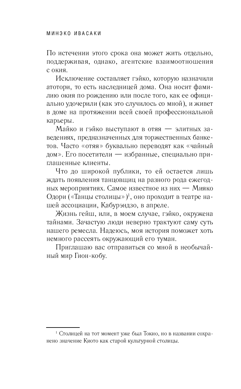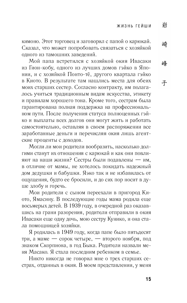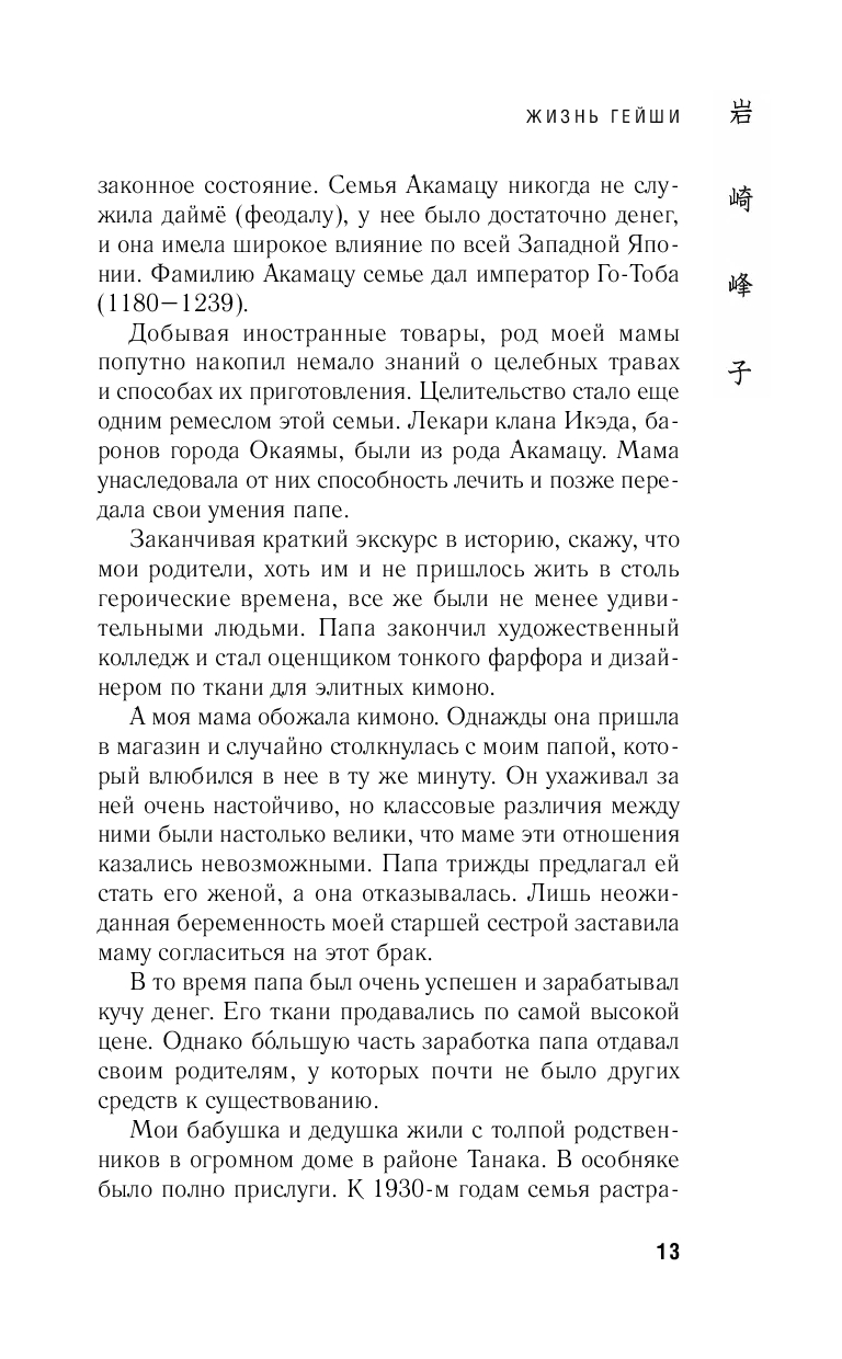 Временами душераздирающая, внушающая благоговейный трепет и абсолютно правдивая история жизни самой известной женщины Японии. Минеко Ивасаки стала гейшей в возрасте пяти лет. Ей поклонялись короли, принцы, военные и государственные деятели. Она стала одной из самых уважаемых гейш в истории Японии, но ей пришлось заплатить весьма высокую цену за свою невероятную жизнь.