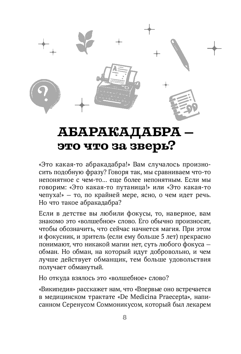 Прочитав эту книгу, вы узнаете, от чего защищает абракадабра, как подать на обед кавардак и у кого были домашними любимцами бегемот с левиафаном. А еще – лишний раз убедитесь в том, что во времена блогов, мессенджеров и искусственного интеллекта такой багаж как эрудиция точно надо всегда иметь при себе!