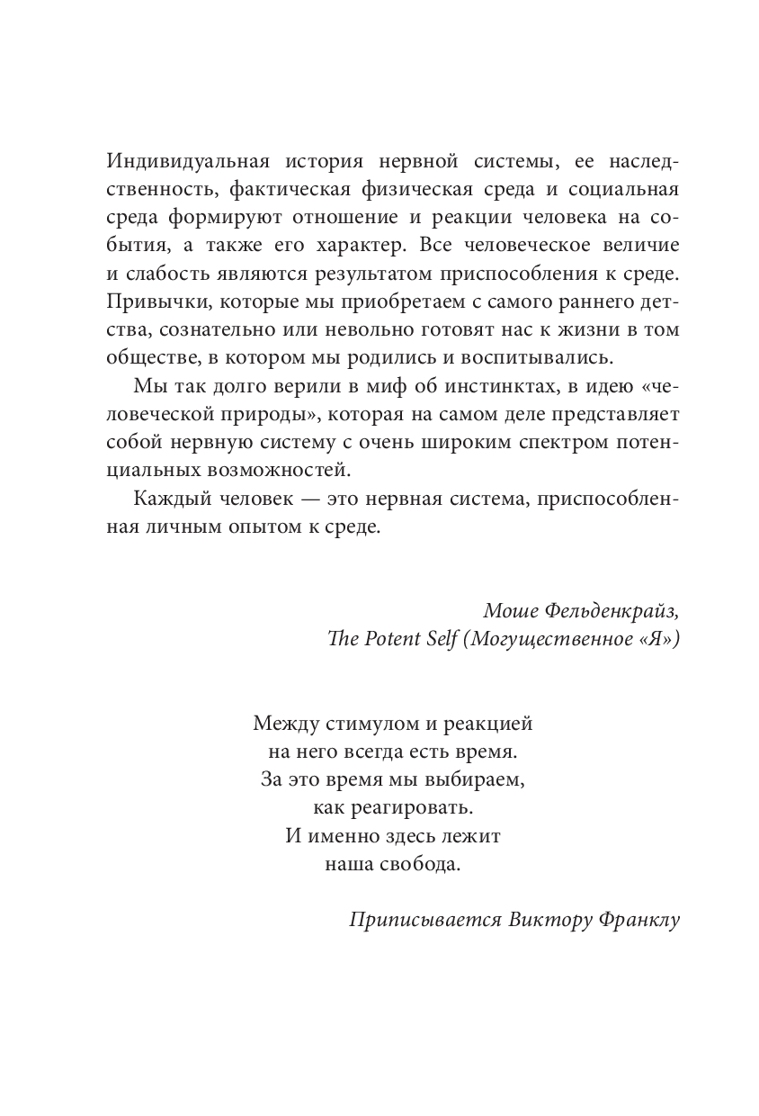 Автор, ученица школы Фельденкрайза, рассказывает, как возможно применить Метод Фельденкрайза на практике и добиться улучшения эмоционального, когнитивного, физического качества жизни, достигаемого за счёт раскрытия человеком своего врождённого потенциала.