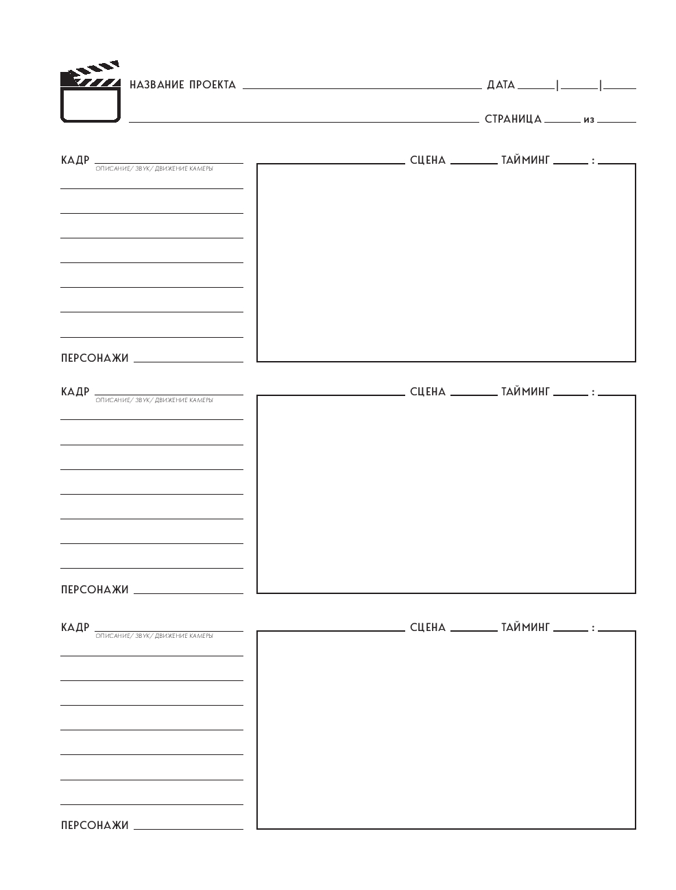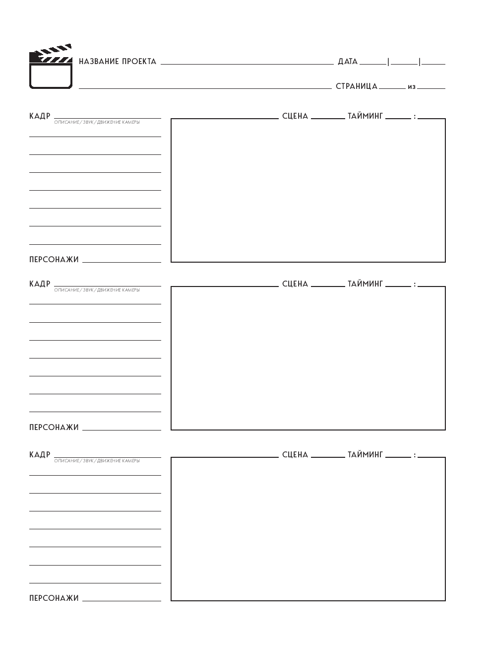 Профессиональный блокнот раскадровки для создания контента в кино, на телевидении и в социальных сетях.