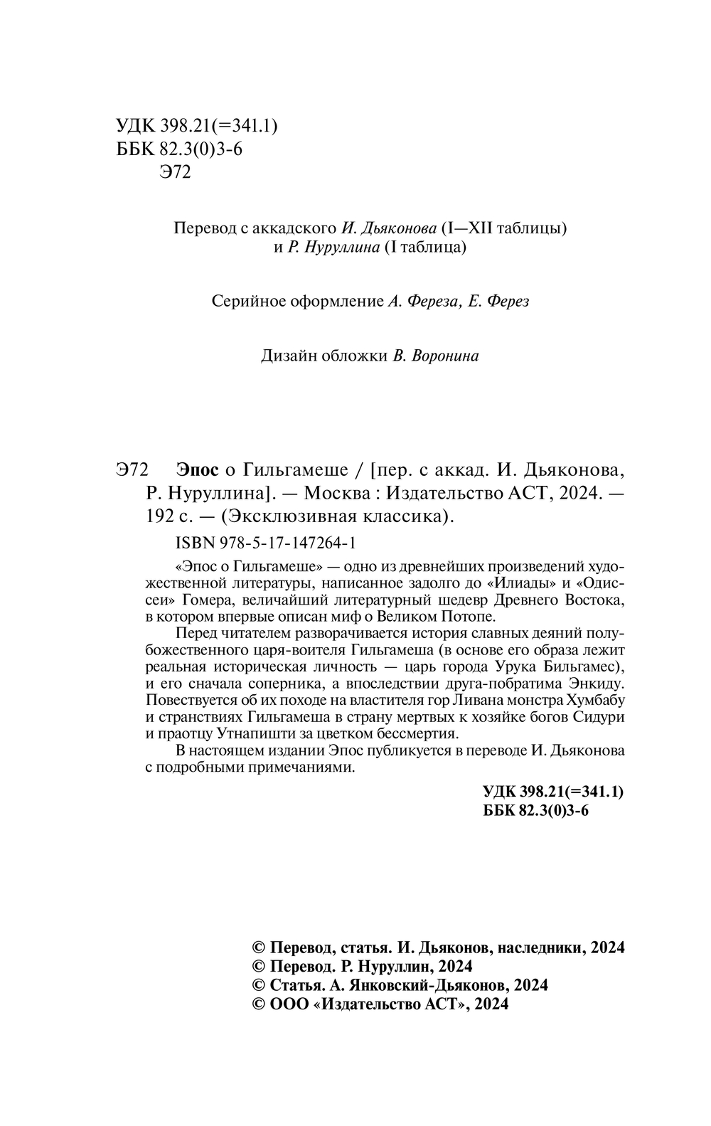 В настоящем издании Эпос публикуется в отреставрированном переводе И. Дьяконова с подробными примечаниями.