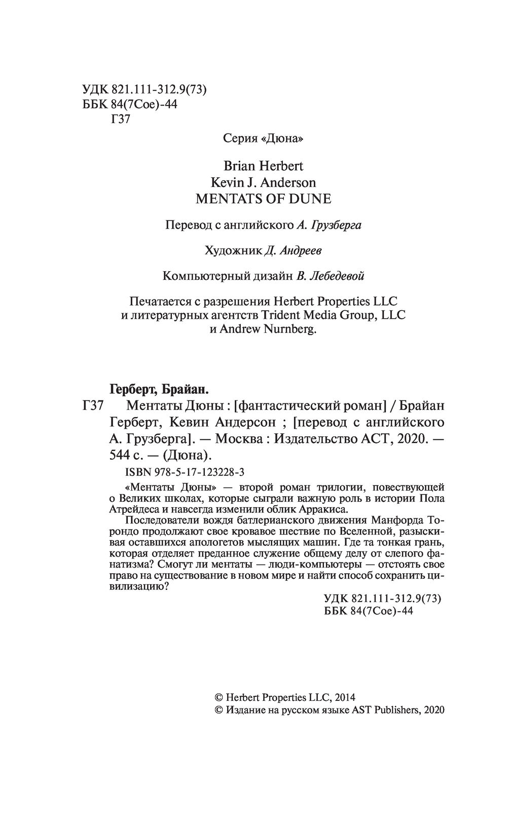 "Ментаты Дюны" – второй роман трилогии, повествующей о Великих школах, которые сыграли важную роль в истории Пола Атрейдеса и навсегда изменили облик Арракиса.