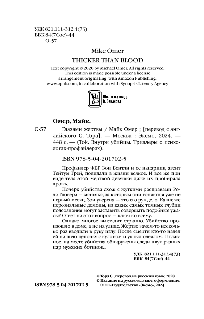 | Серия | Tok. Внутри убийцы. Триллеры о психологах-профайлерах |