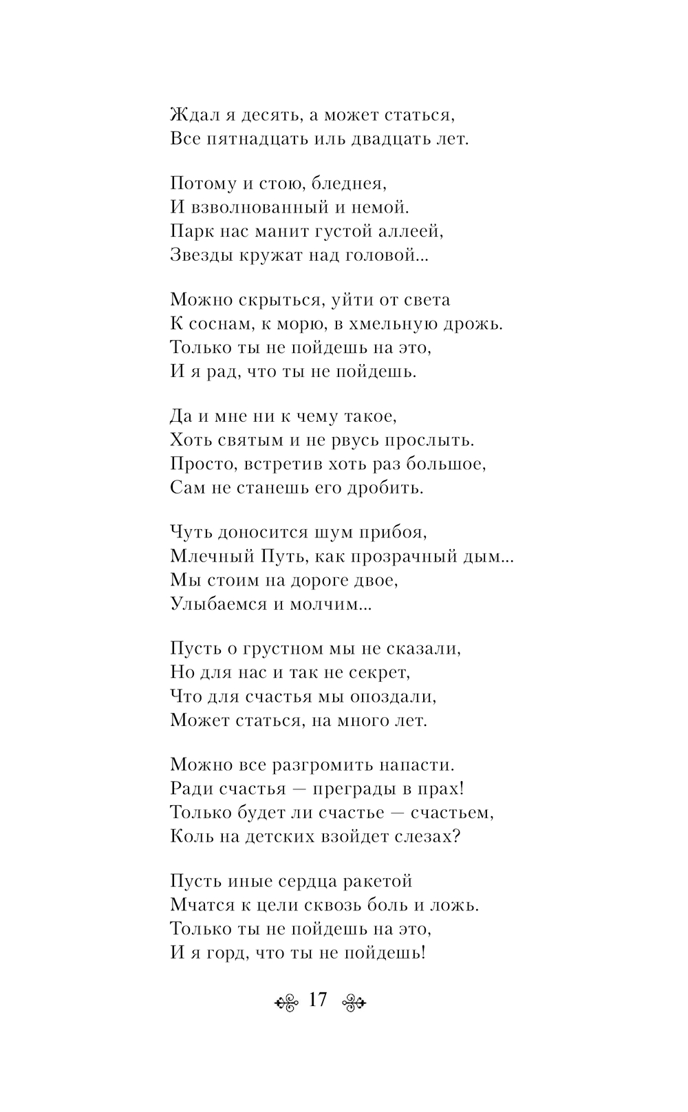 Эдуард Асадов (1923-2004) – один из самых читаемых поэтов ХХ века, кумир советской молодежи. Все его творчество буквально пронизано искренностью, радостью жизни, а главное – добротой, которой порой нам так не хватает. Лирика Асадова – это торжество смелых и благородных чувств, борьба за чистое и трепетное чувство, которая тронет каждое любящее сердце...