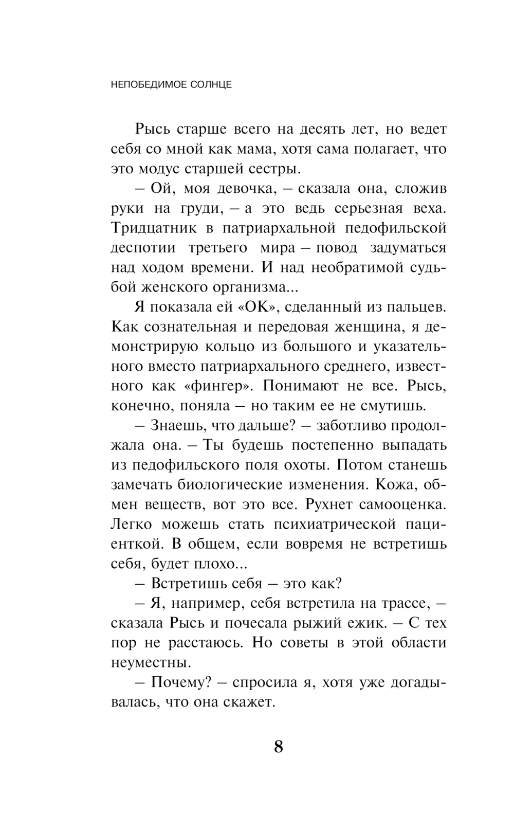 Саша встретит историков-некроэмпатов, римских принцепсов, американских корпоративных анархистов, турецких филологов-суфиев, российских шестнадцатых референтов, кубинских тихарей и секс-работниц – и других интересных людей (и не только). Но самое главное, она прикоснется к тайне тайн – и увидит, откуда и как возникает то, что Илон Маск называет компьютерной симуляцией, а Святая Церковь – Мiром Божьим.
