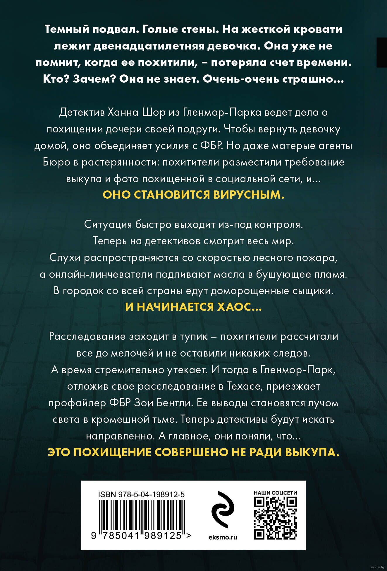 Расследование заходит в тупик – похитители рассчитали всё до мелочей и не оставили никаких следов. А время стремительно утекает. И тогда в Гленмор-Парк, отложив свое расследование в Техасе, приезжает профайлер ФБР Зои Бентли. Ее выводы становятся лучом света в кромешной тьме. Теперь детективы будут искать направленно. А главное, они поняли, что это похищение совершено не ради выкупа...