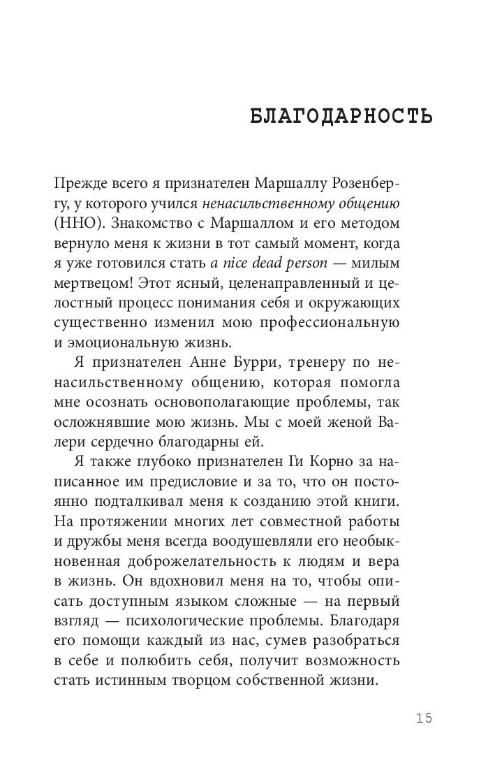 Все беды от того, что мы так и норовим перекроить себя под ожидания окружающих, считает автор этой книги Тома Д'Ансембур. Делаем не то, что хотим, а то, что, как нам кажется, хотят от нас другие. Отсюда обиды, конфликты, недовольство собственной жизнью и отношением к себе других людей. Как быть? Применять принципы "Ненасильственного общения" – системы, которая помогает разобраться со своими настоящими желаниями и учит правильно формулировать запросы к окружающим.