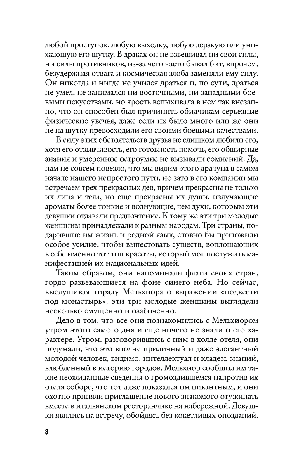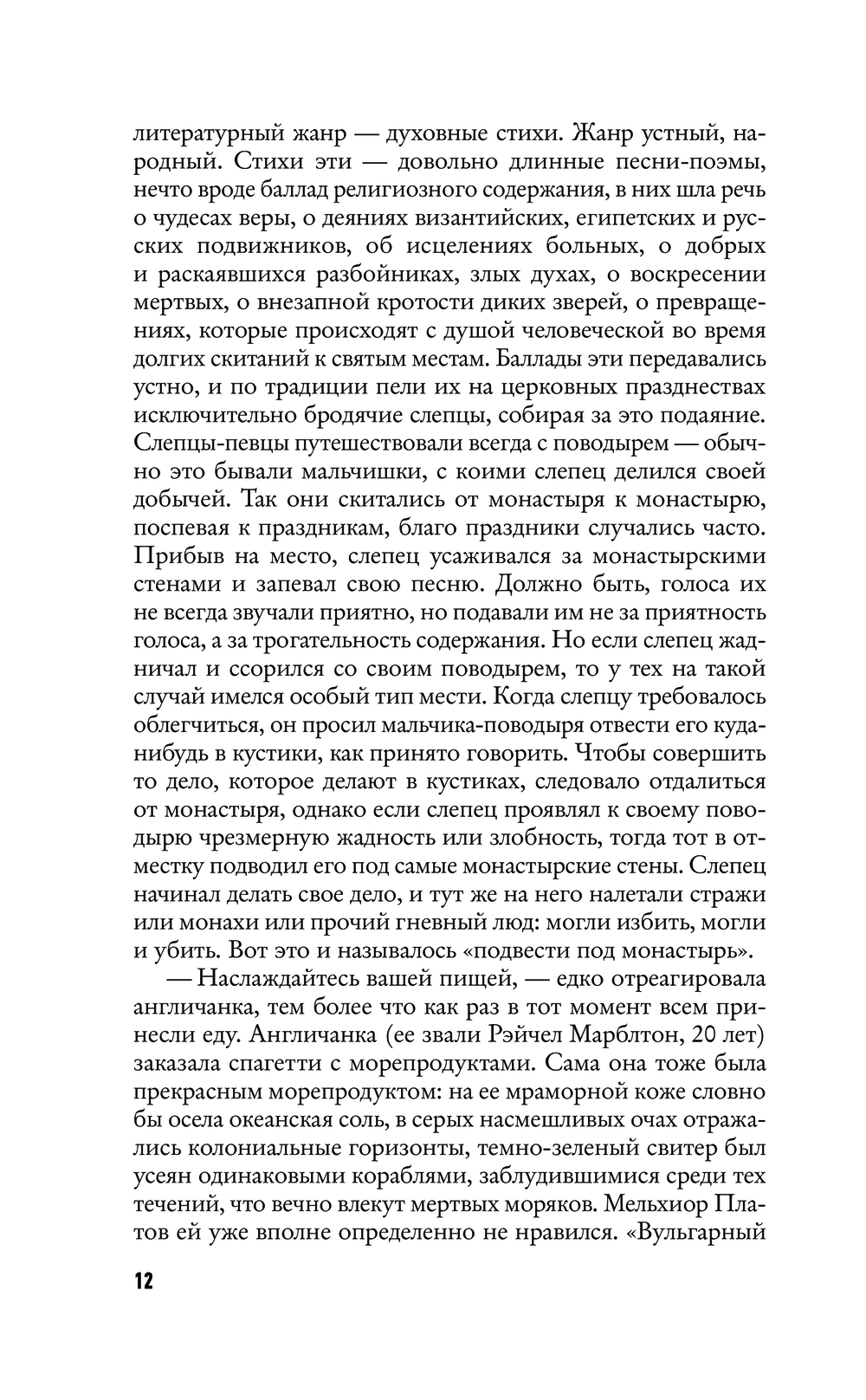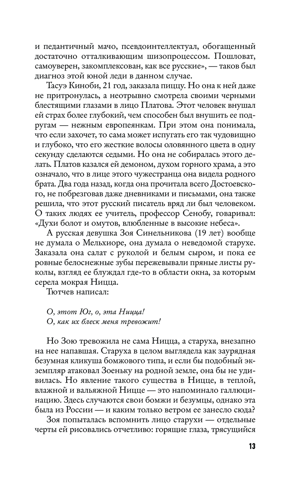 Здесь раздваиваются герои, а, перевернув страницу, можно попасть в отдельный фантасмагоричный сюжет и быть унесенным живым потоком слов, вагонетками синонимов, языковой игрой, ироничными пародиями, неожиданными отступлениями, мозаичностью литературных и культурных отсылок. И даже открывается роман внезапно, вполне в хармсовском духе – с драки со старухой.