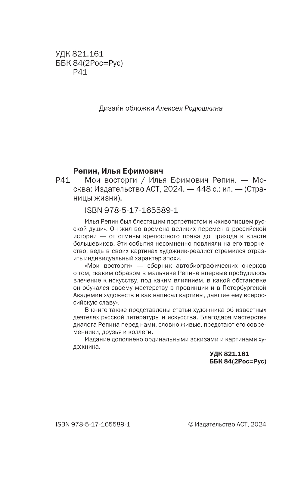 В книге также представлены статьи художника об известных деятелях русской литературы и искусства. Благодаря мастерству диалога Репина перед нами, словно живые, предстают его современники, друзья и коллеги.
