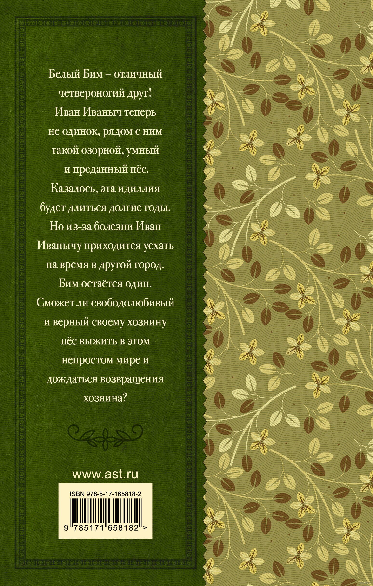 Повесть Гавриила Троепольского о собаке по имени Белый Бим и его мудром и добром хозяине раскрывает, насколько беззаветно преданными и доверчивыми могут быть братья наши меньшие. Биму повезло, такого хозяина, как у него, днём с огнём не сыщешь. Они и в правду стали настоящими друзьями: вместе идут на охоту, вместе смотрят в окно и думают каждый о своём. Но Биму предстоит пройти страшное испытание – он, весёлый и доверчивый пёс, столкнётся с жестокими и равнодушными людьми.