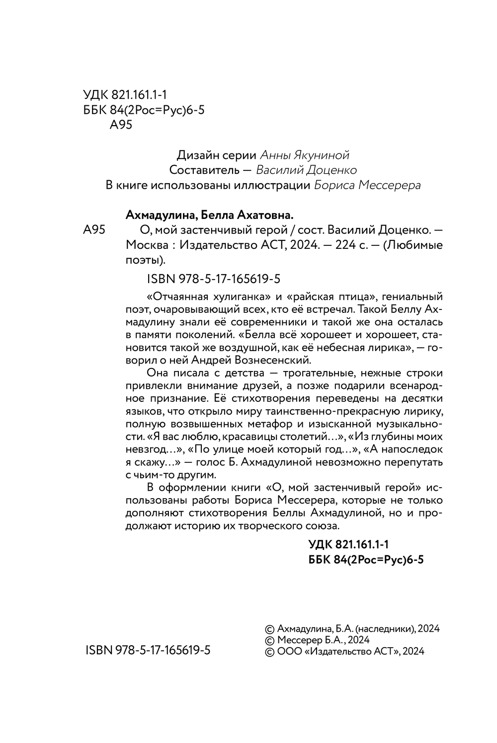 В оформлении книги "О, мой застенчивый герой" использованы работы Бориса Мессерера, которые не только дополняют стихотворения Беллы Ахмадулиной, но и продолжают историю их творческого союза.