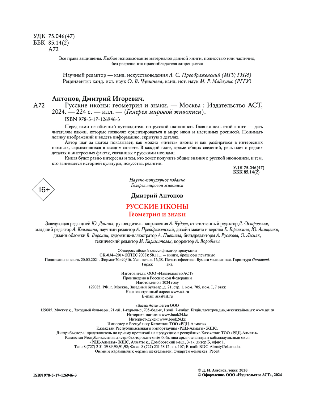 Книга будет интересна и тем, кто хочет получить общие знания о русской иконописи, и тем, кто профессионально занимается историей культуры, искусства, религии.